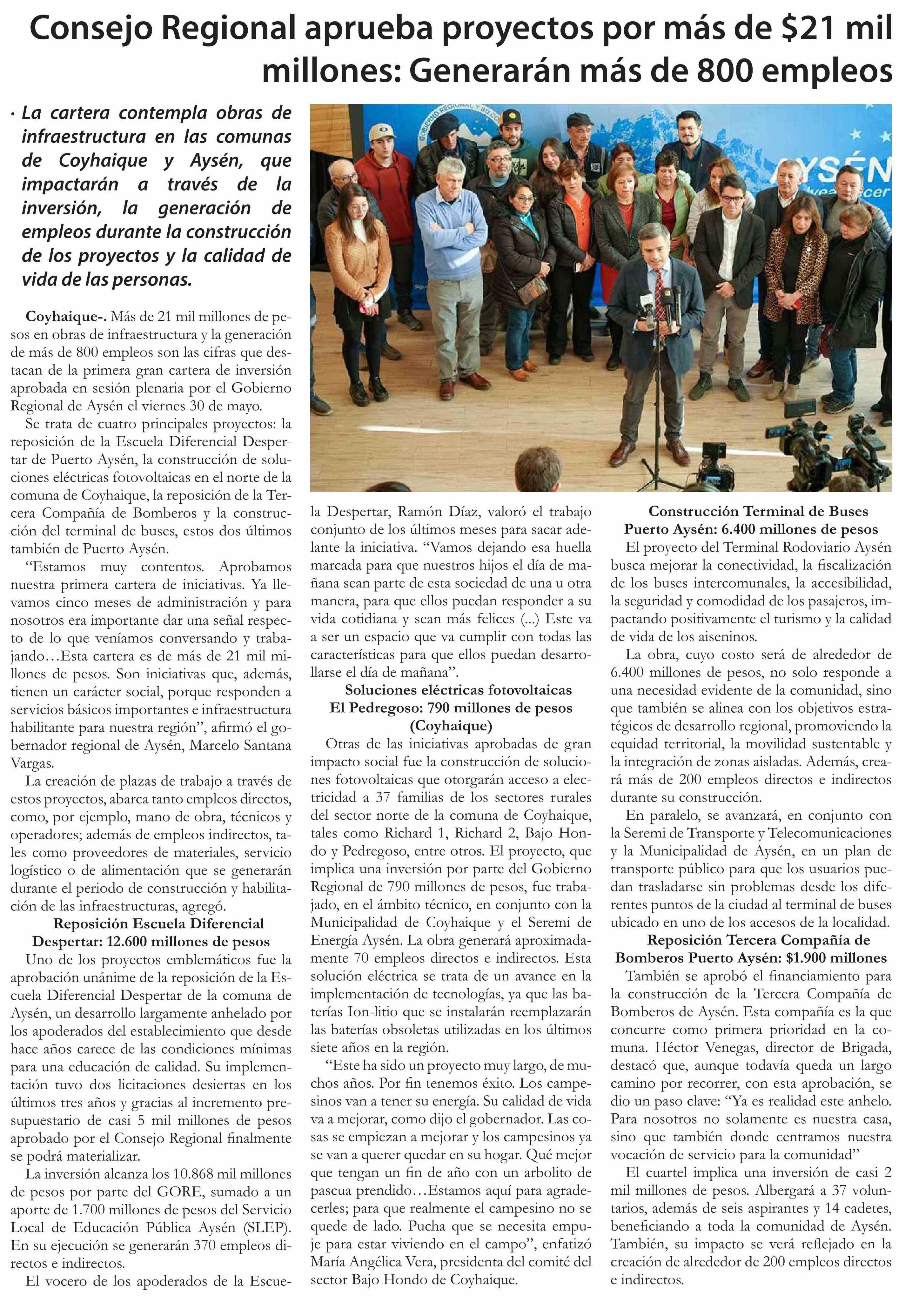 | Título: | Consejo Regional aprueba proyectos por más de $21 mil millones: Generarán más de 800 empleos |