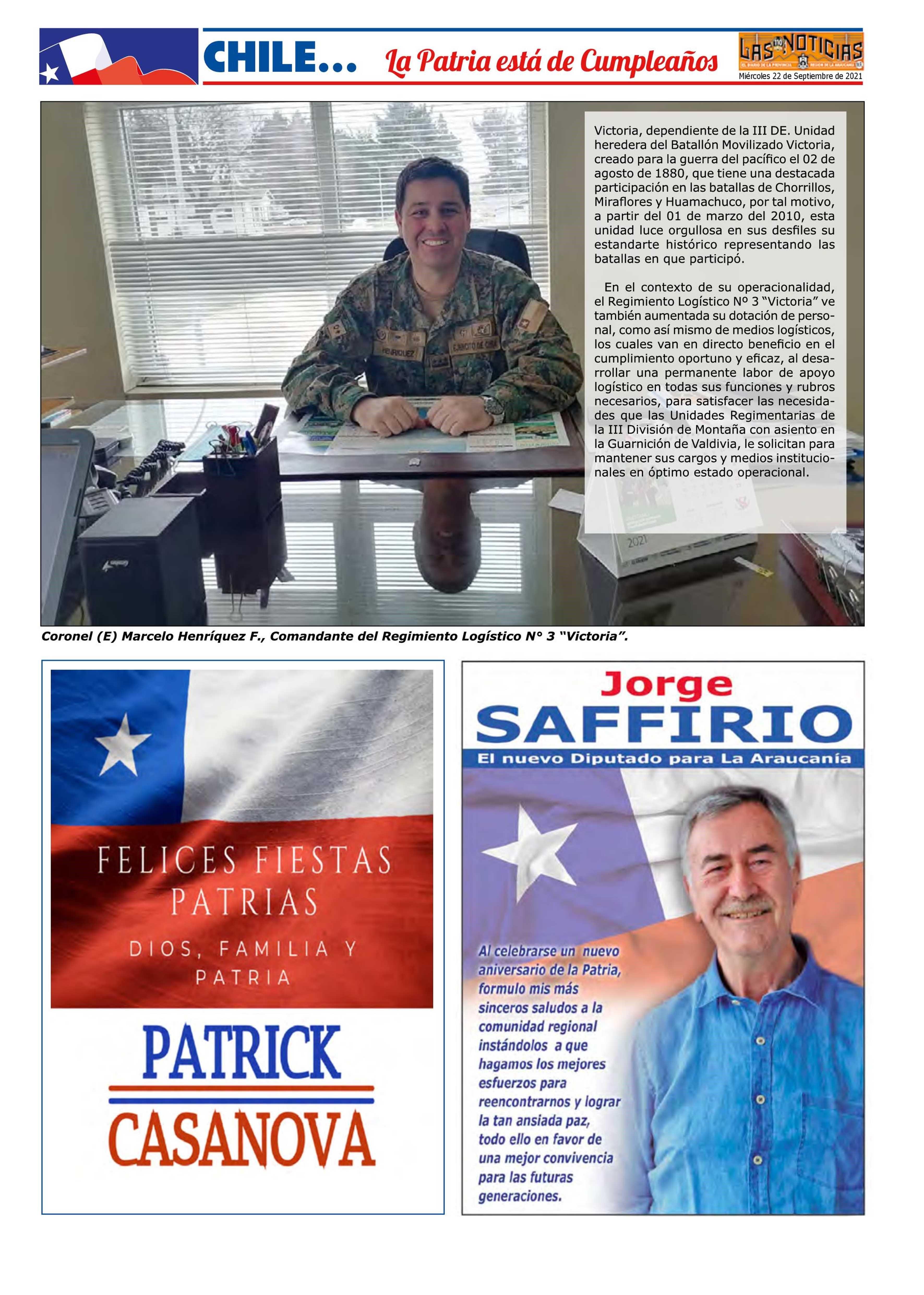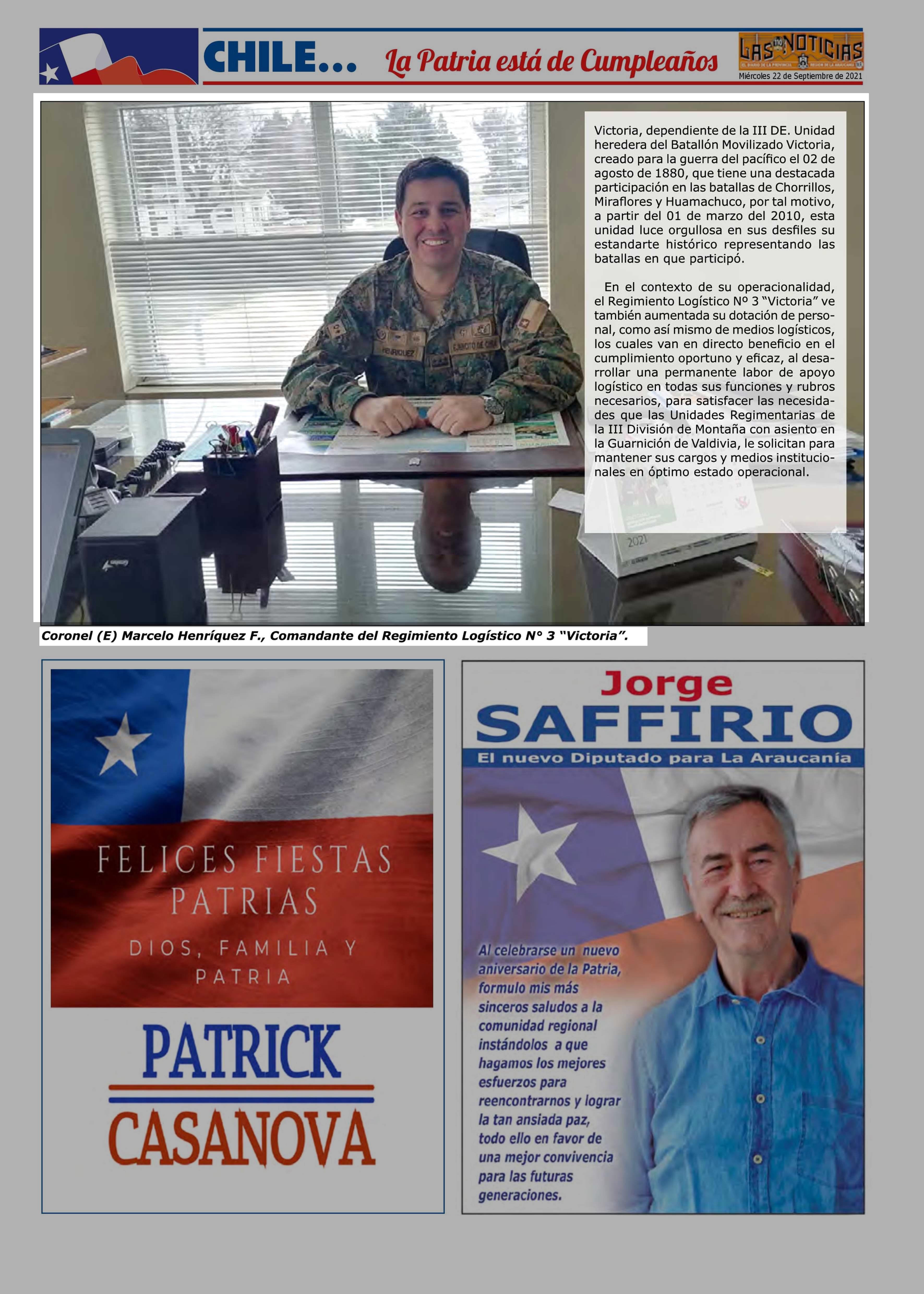 Historia del Regimiento Logístico 3 “Victoria” 22-09-2021 Las Noticias |