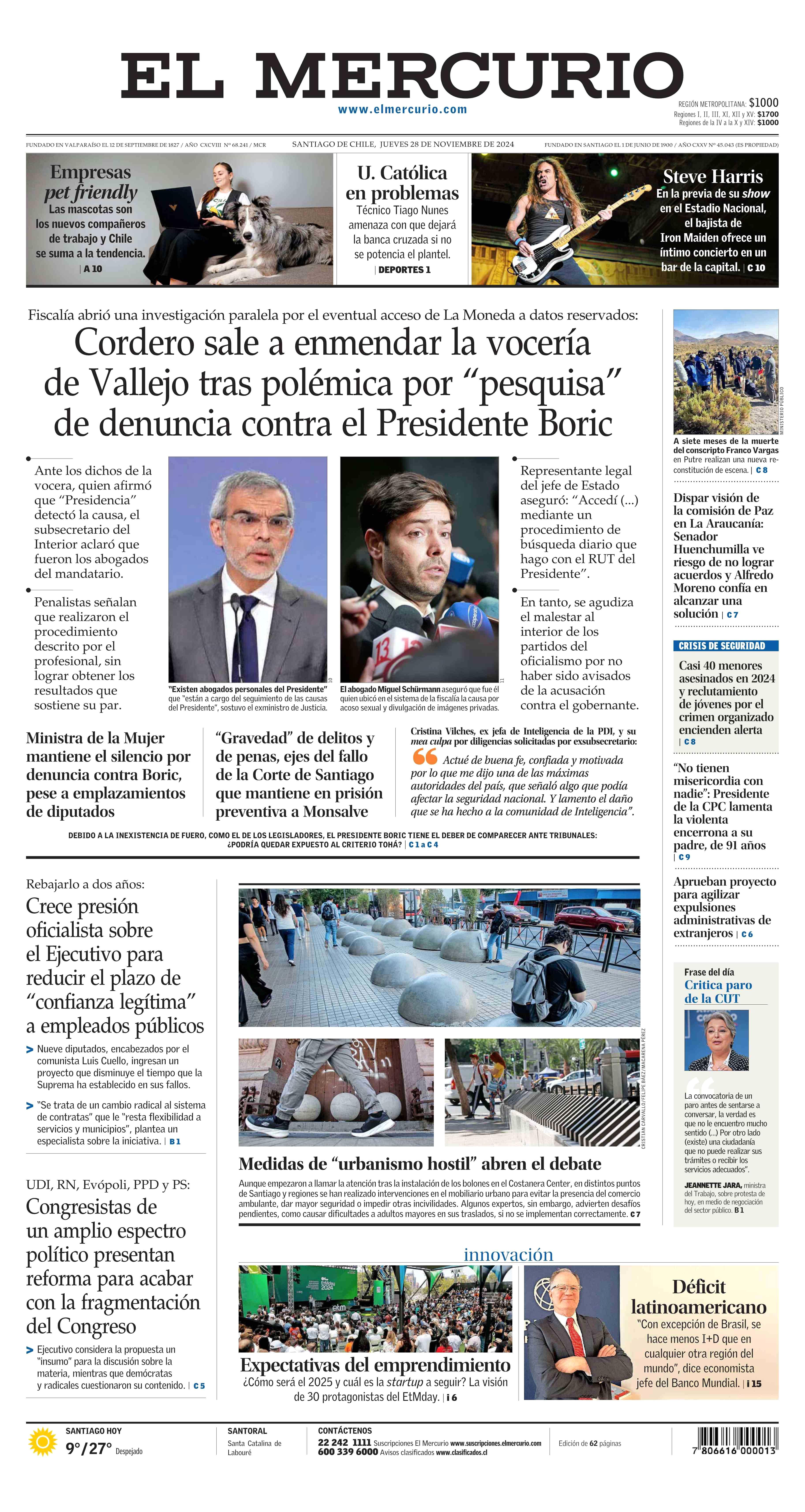 PORTADA EL MERCURIO (A) CHILE 28-11-2024 El Mercurio |