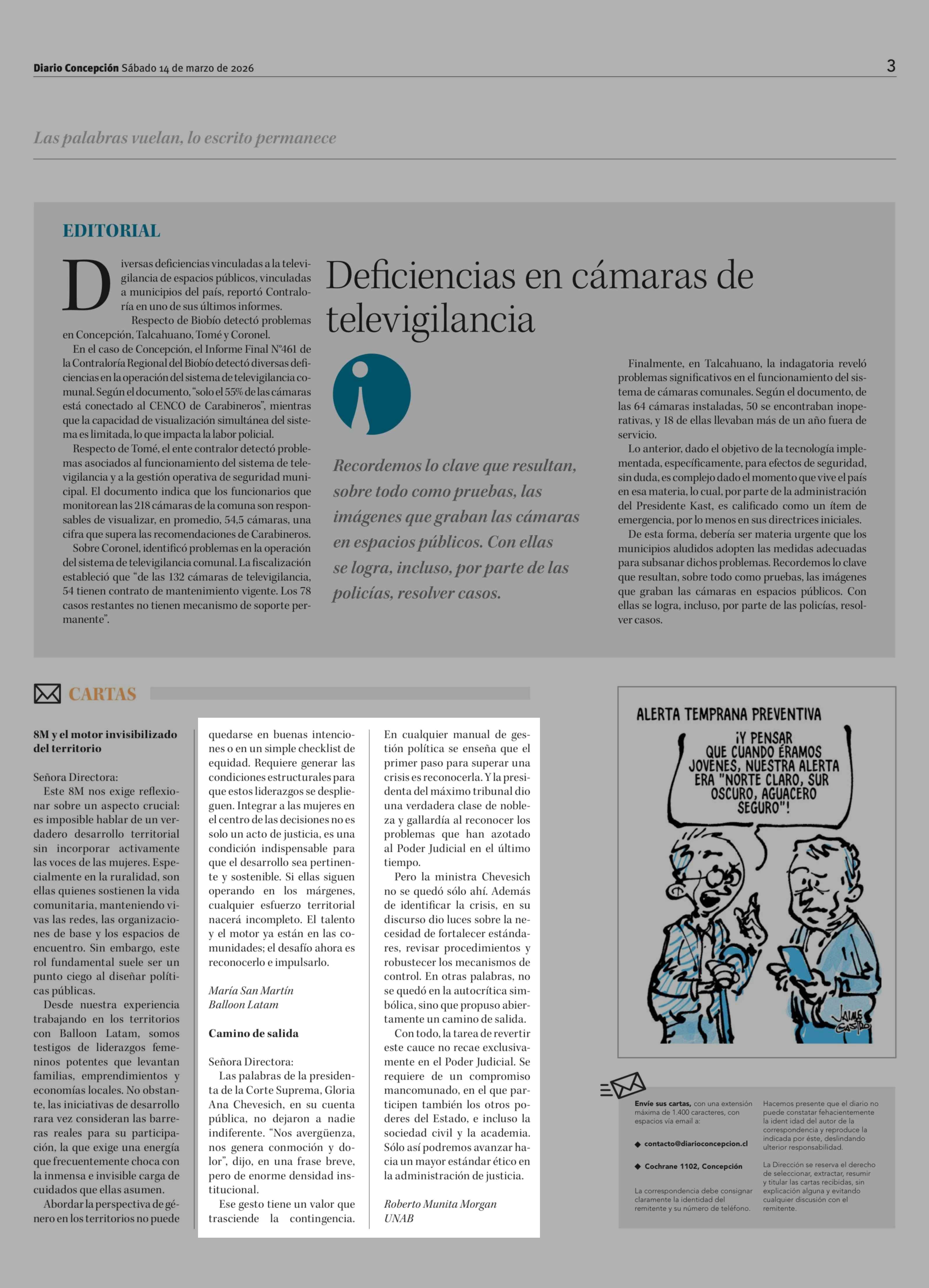 Cartas: Camino de salida 14-03-2026 Diario Concepción |