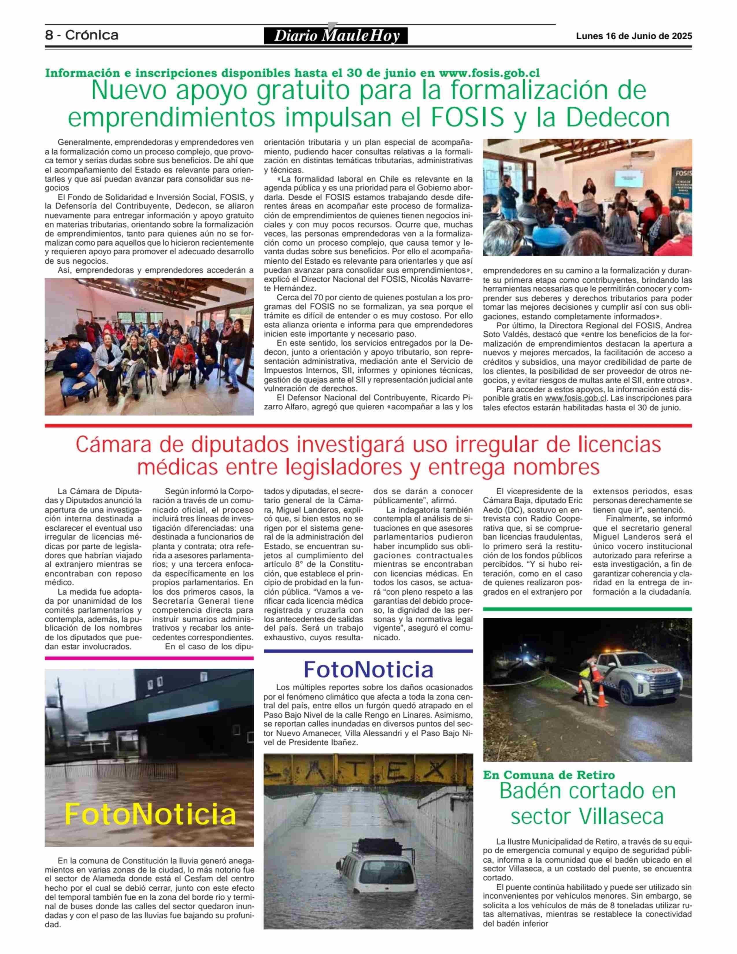 | Fuente: | Maule Hoy (Maule Hoy) | Página(s): | 8 |