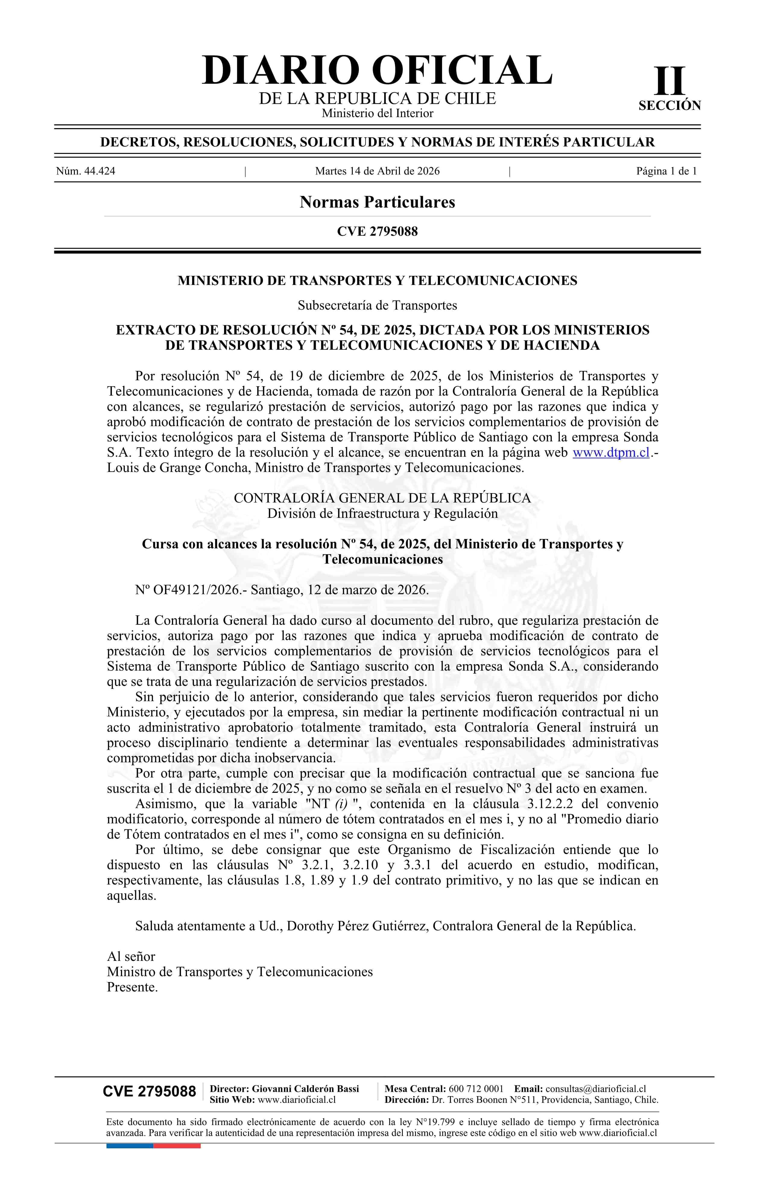 Título: Extracto de resolución número 54, de 2025.- Regulariza prestación de servicios, autoriza pago y aprueba modificación de contrato que indica