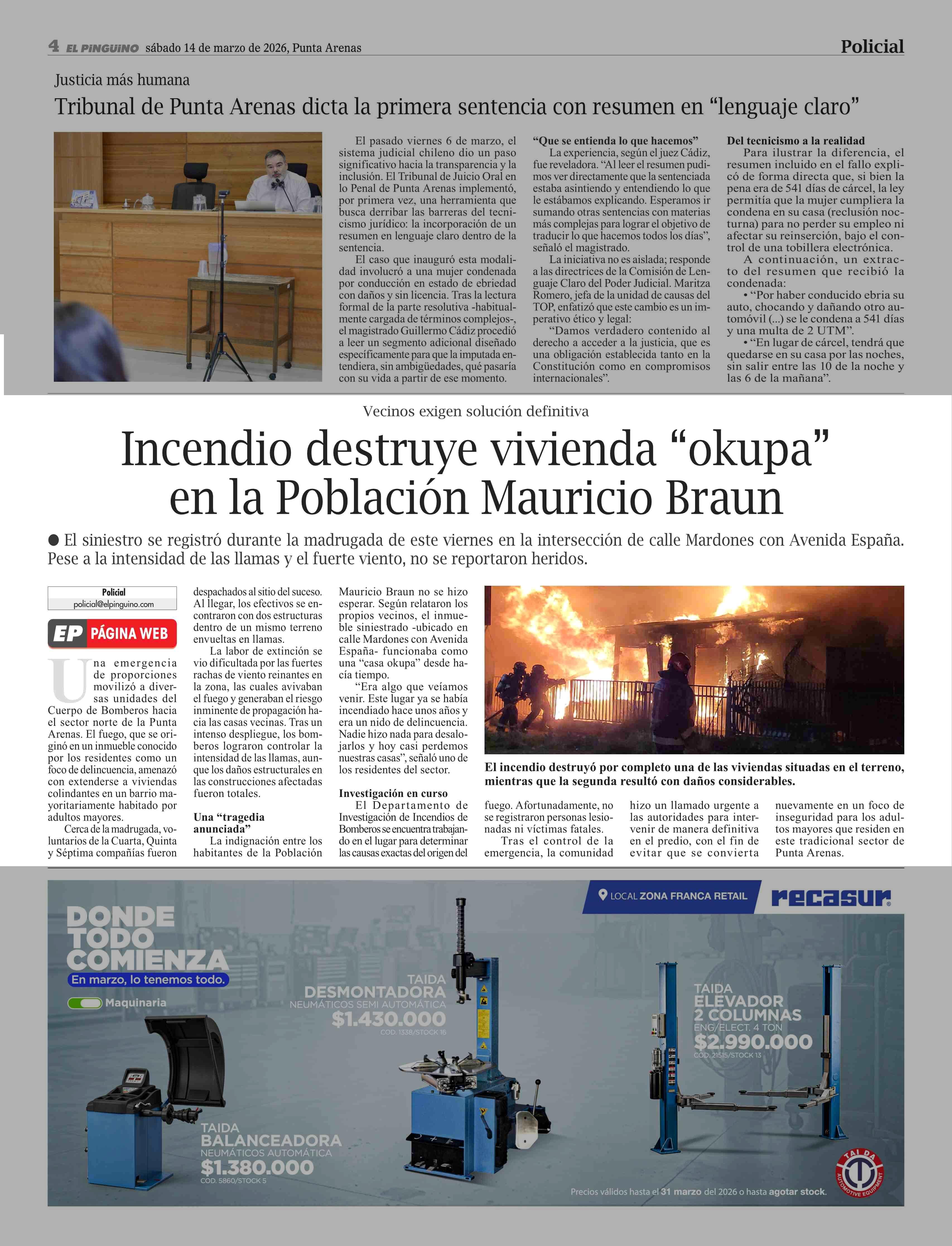 | Fecha: | 14-03-2026 | Sector: | Noticia general | Región: | Región de Magallanes y de la Antártica Chilena |