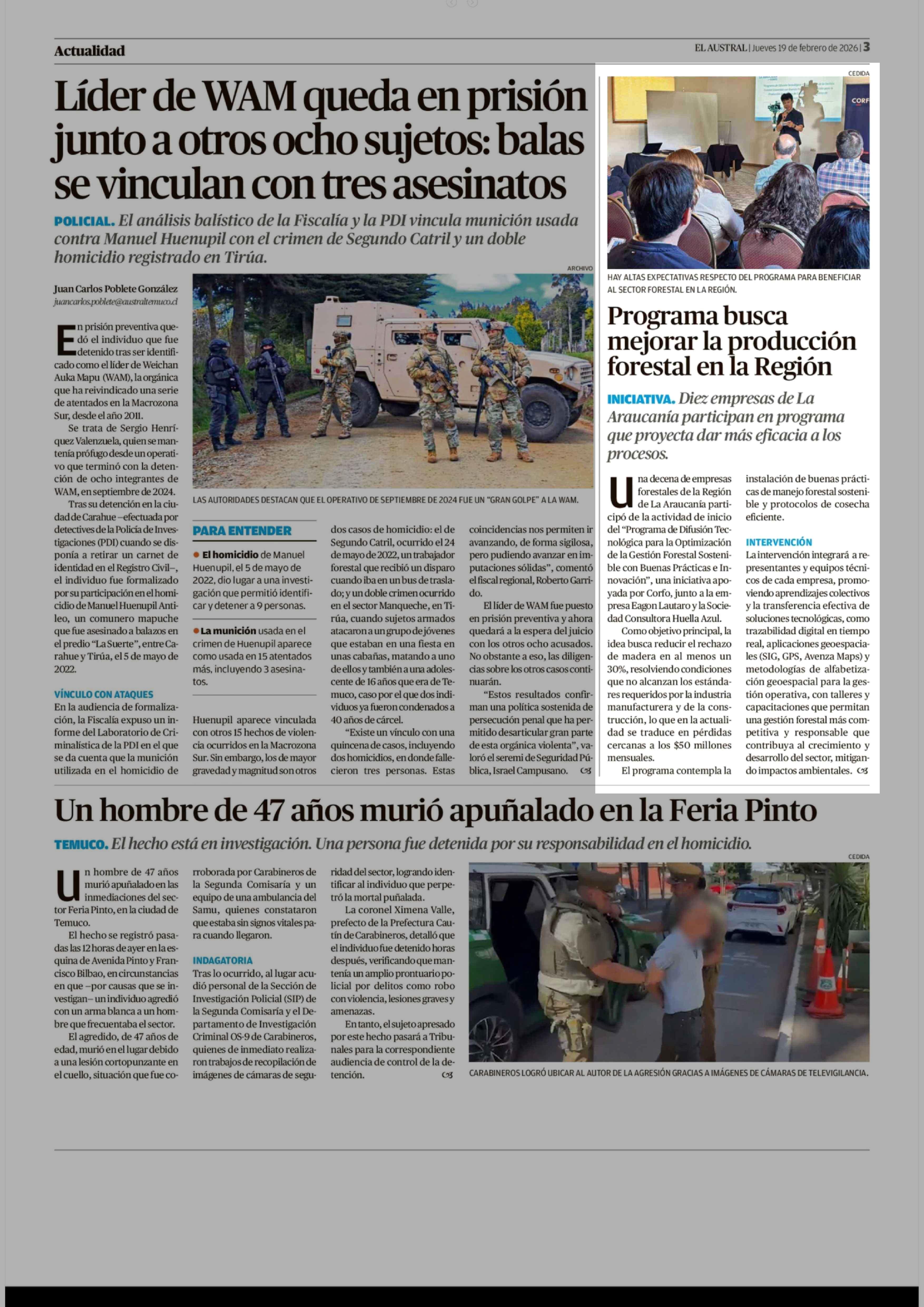 Fecha: 19-02-2026 Sector: Noticia general Región: Región de la Araucanía