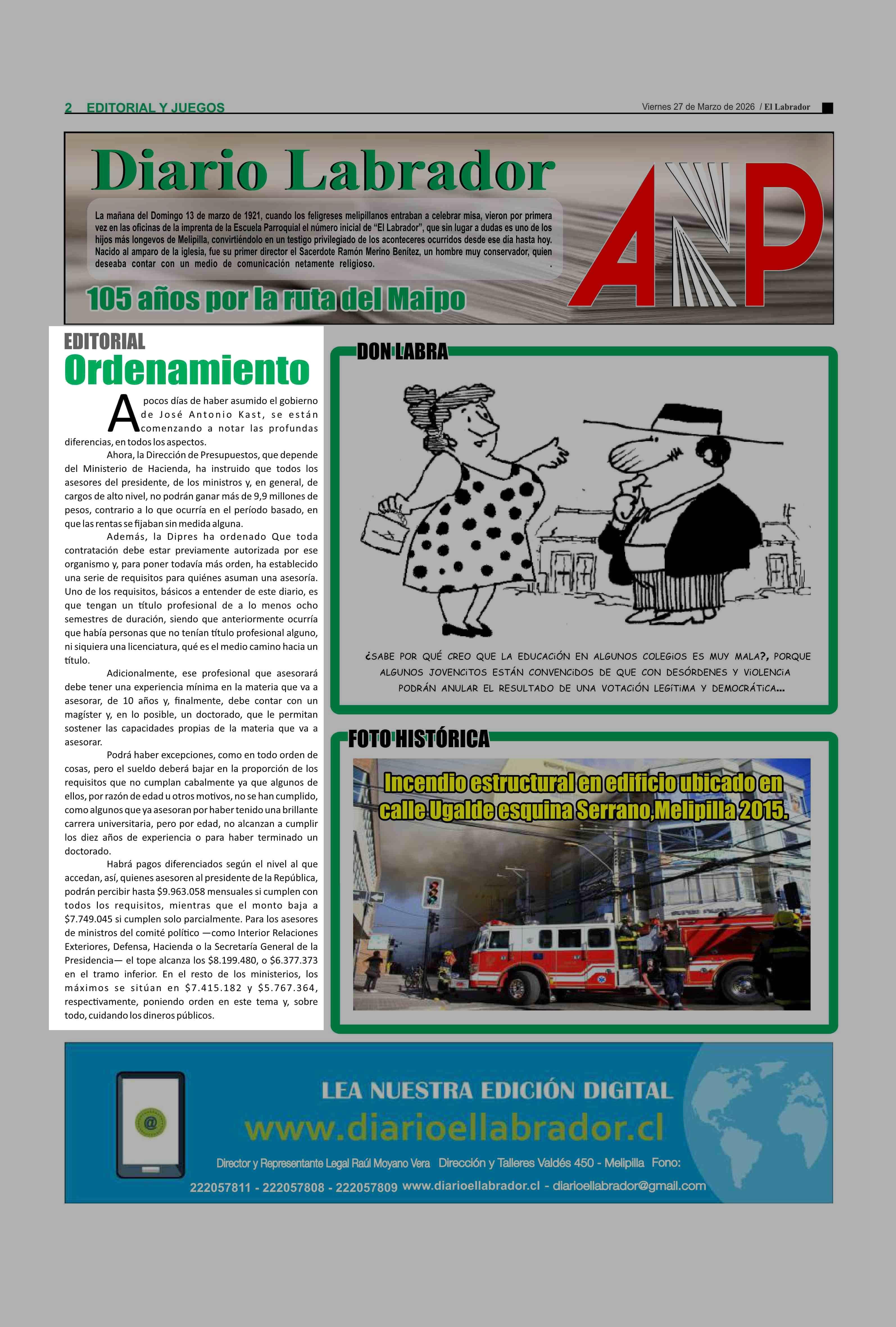 EDITORIAL: Ordenamiento 27-03-2026 El Labrador |