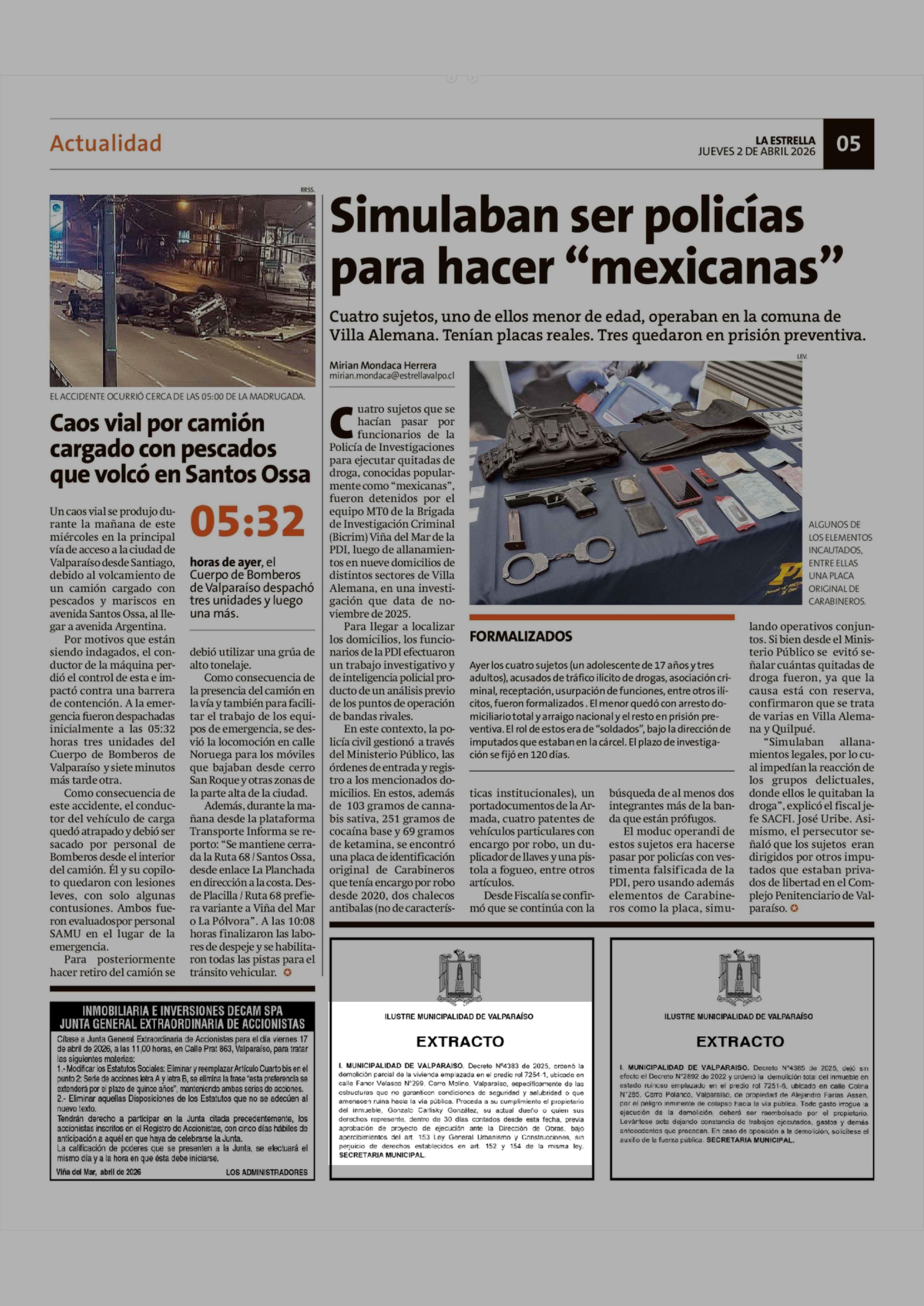 Fecha: 02-04-2026 Sector: Extractos Región: Región de Valparaíso