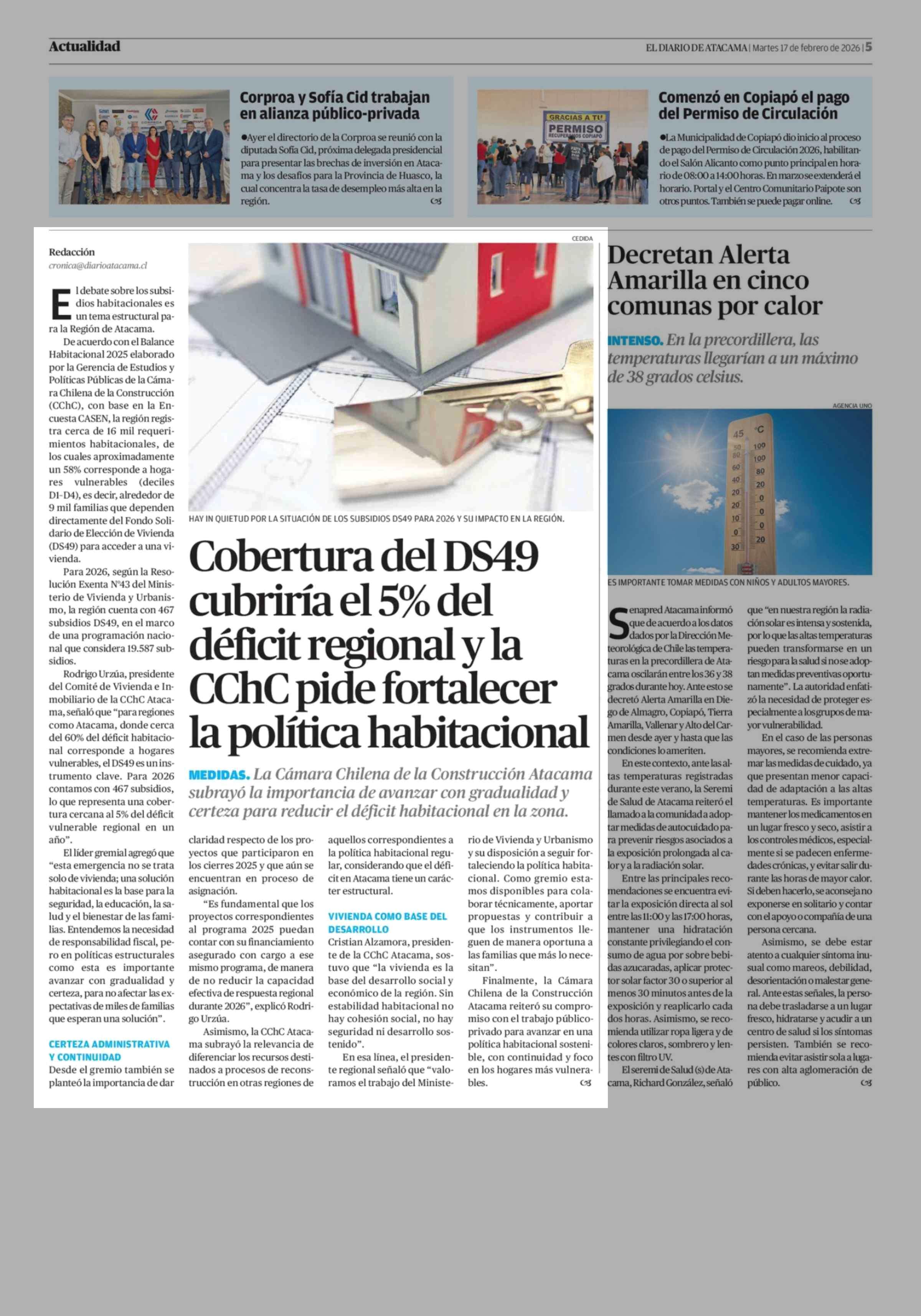Fuente: El Diario de Atacama (El Diario de Atacama) Página(s): 5