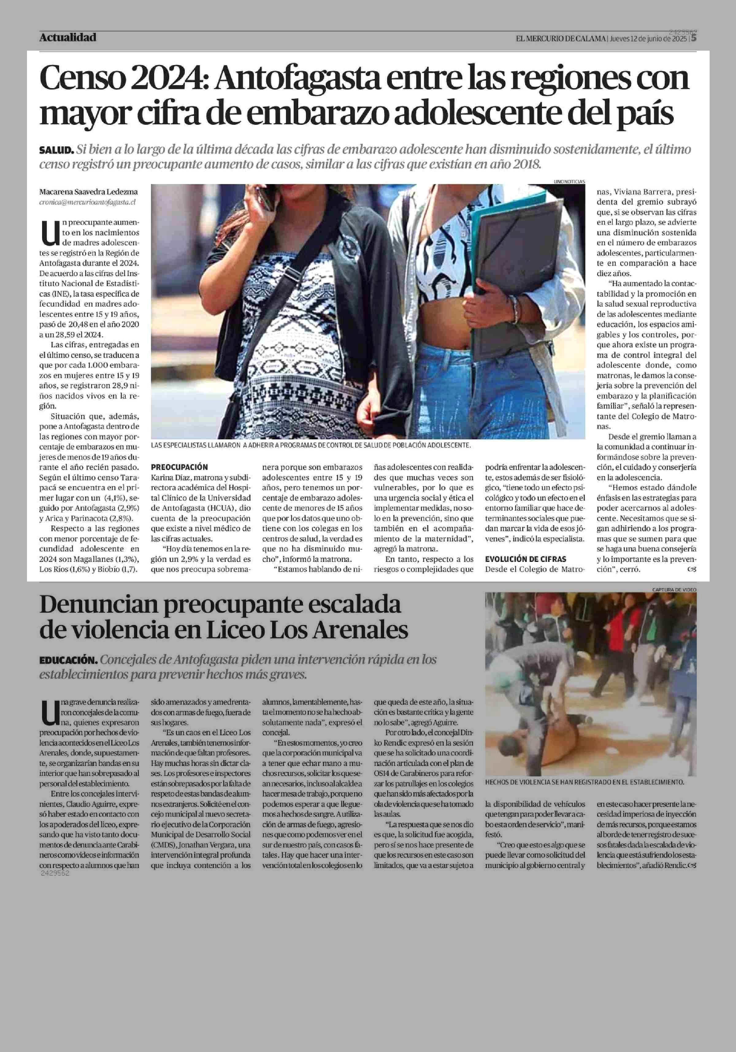 Censo 2024: Antofagasta entre las regiones con mayor cifra de embarazo adolescente del país 12-06-2025 El Mercurio de Calama |
