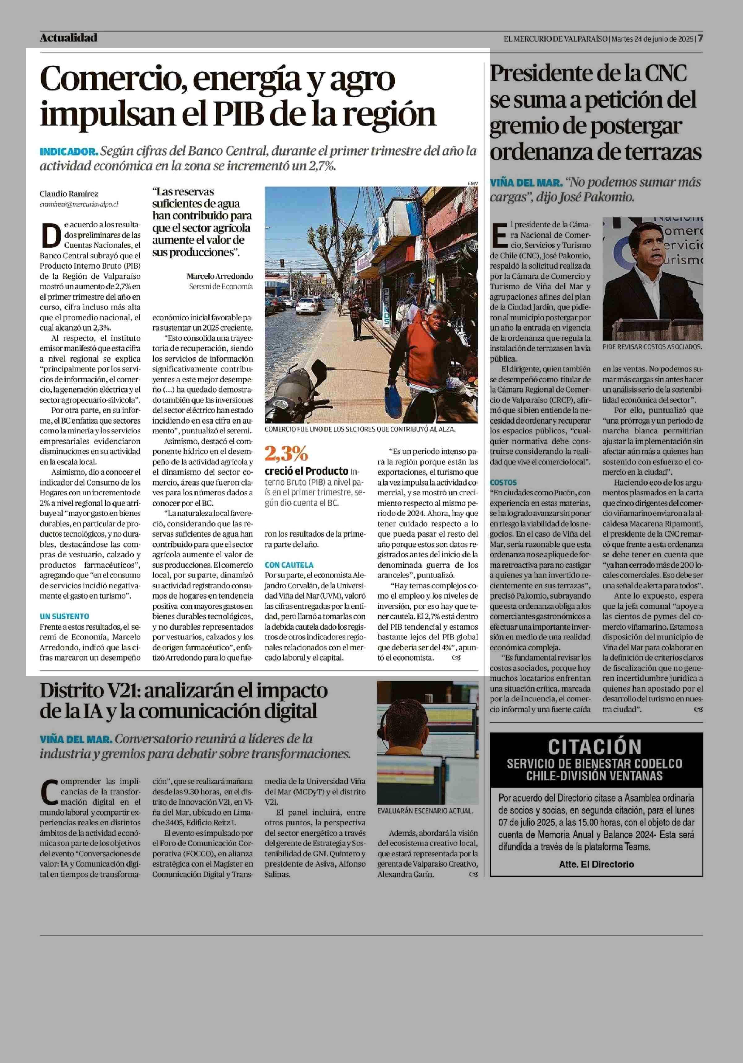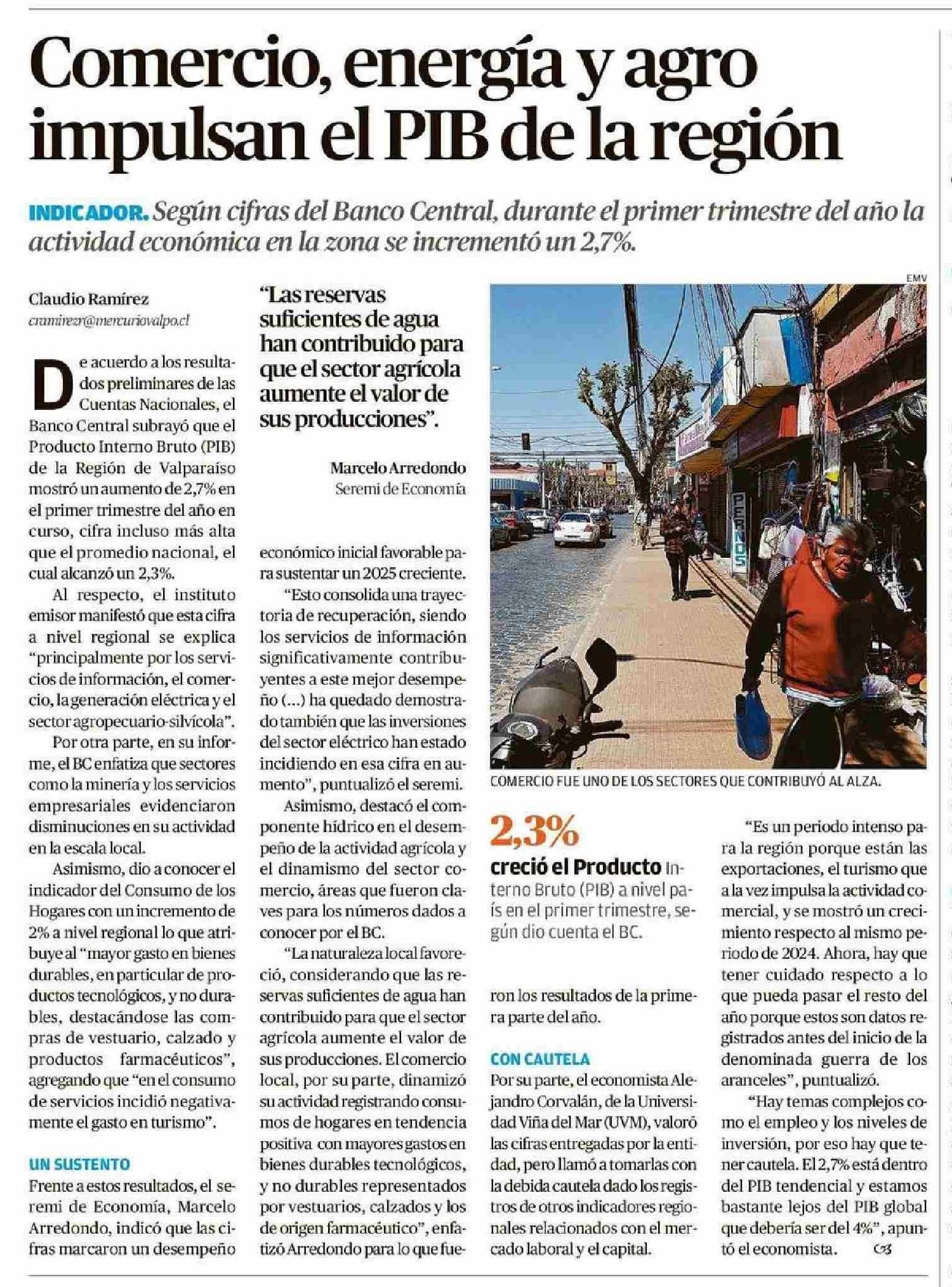 Comercio, energía y agro impulsan el PIB de la región 24-06-2025 El Mercurio de Valparaíso |