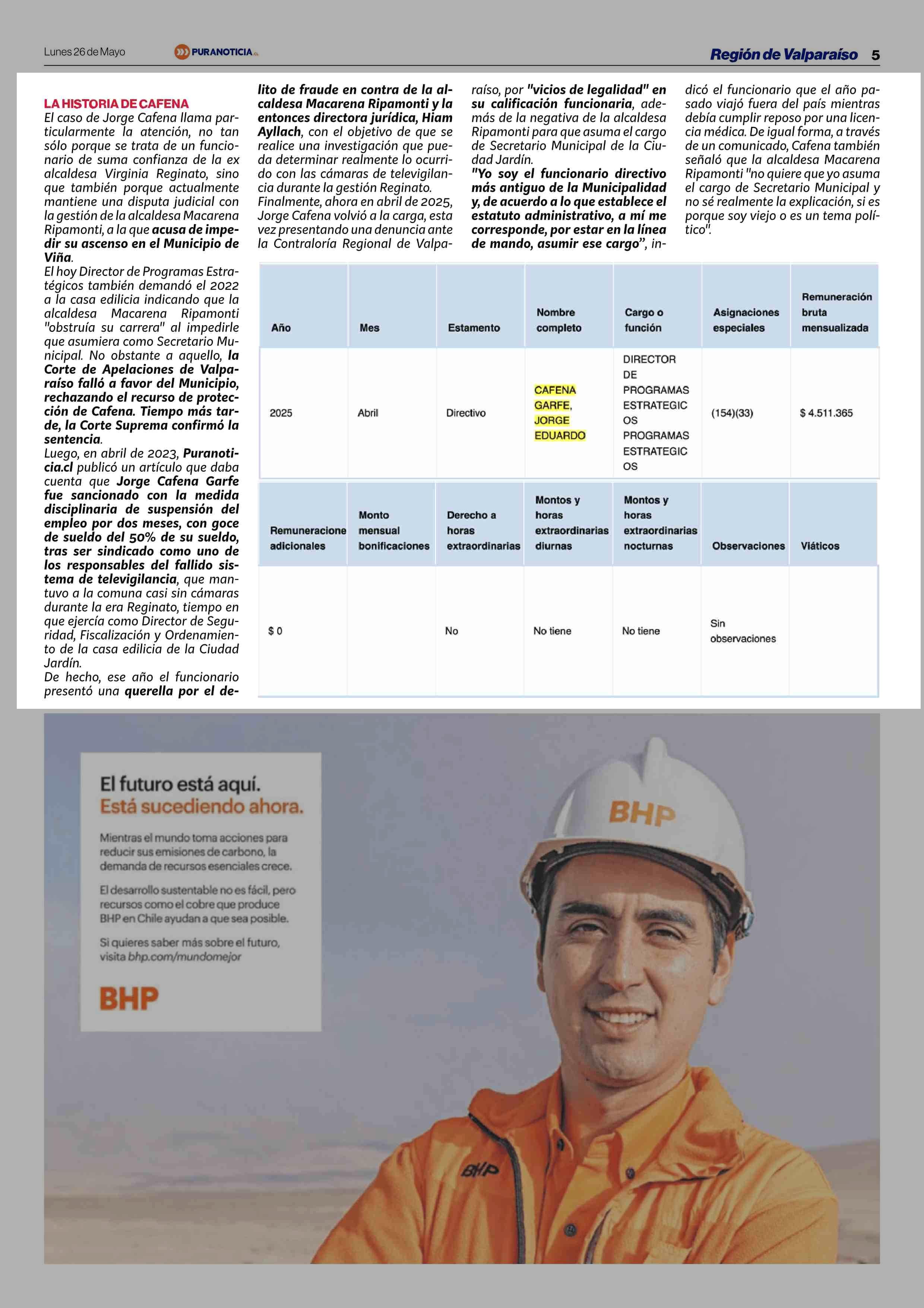 Jorge Cafena, el funcionario de confianza de Reginato que llevó a Ripamonti a tribunales, viajó con licencia médica durante el 2024 26-05-2025 Puranoticia.cl |
