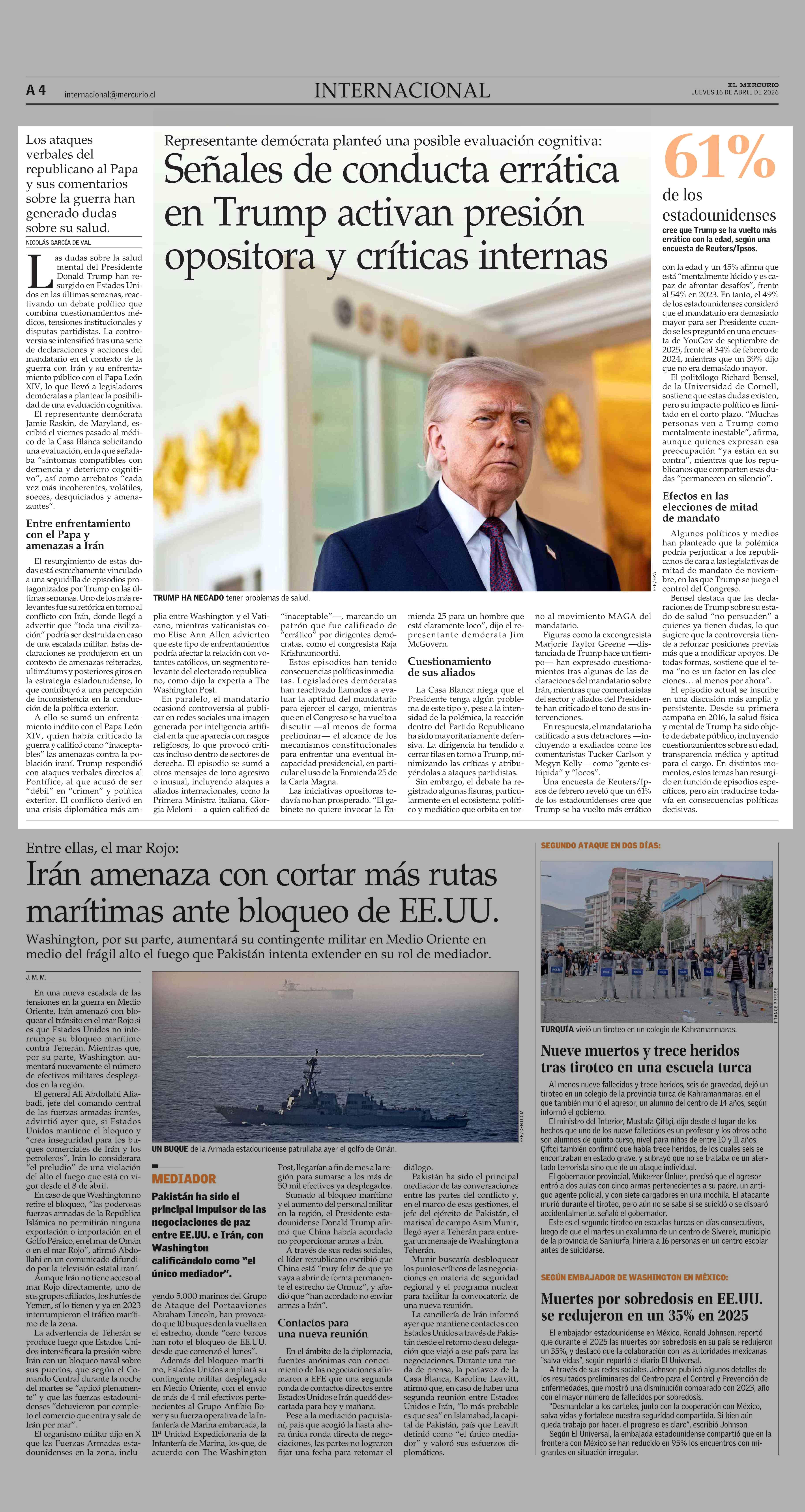 Señales de conducta errática en Trump activan presión opositora y críticas internas 16-04-2026 El Mercurio |