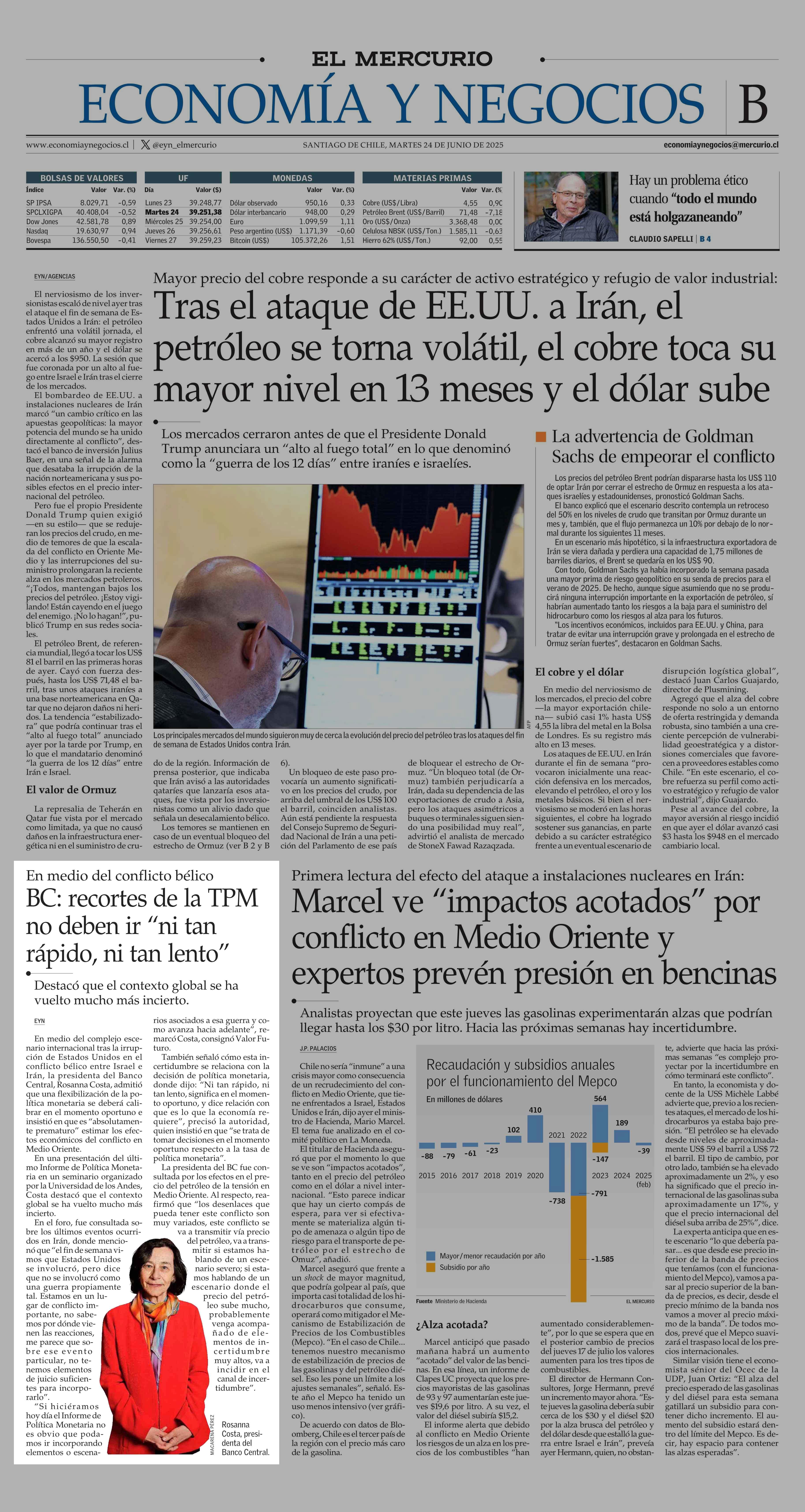 BC: recortes de la TPM no deben ir “ni tan rápido, ni tan lento” 24-06-2025 El Mercurio |