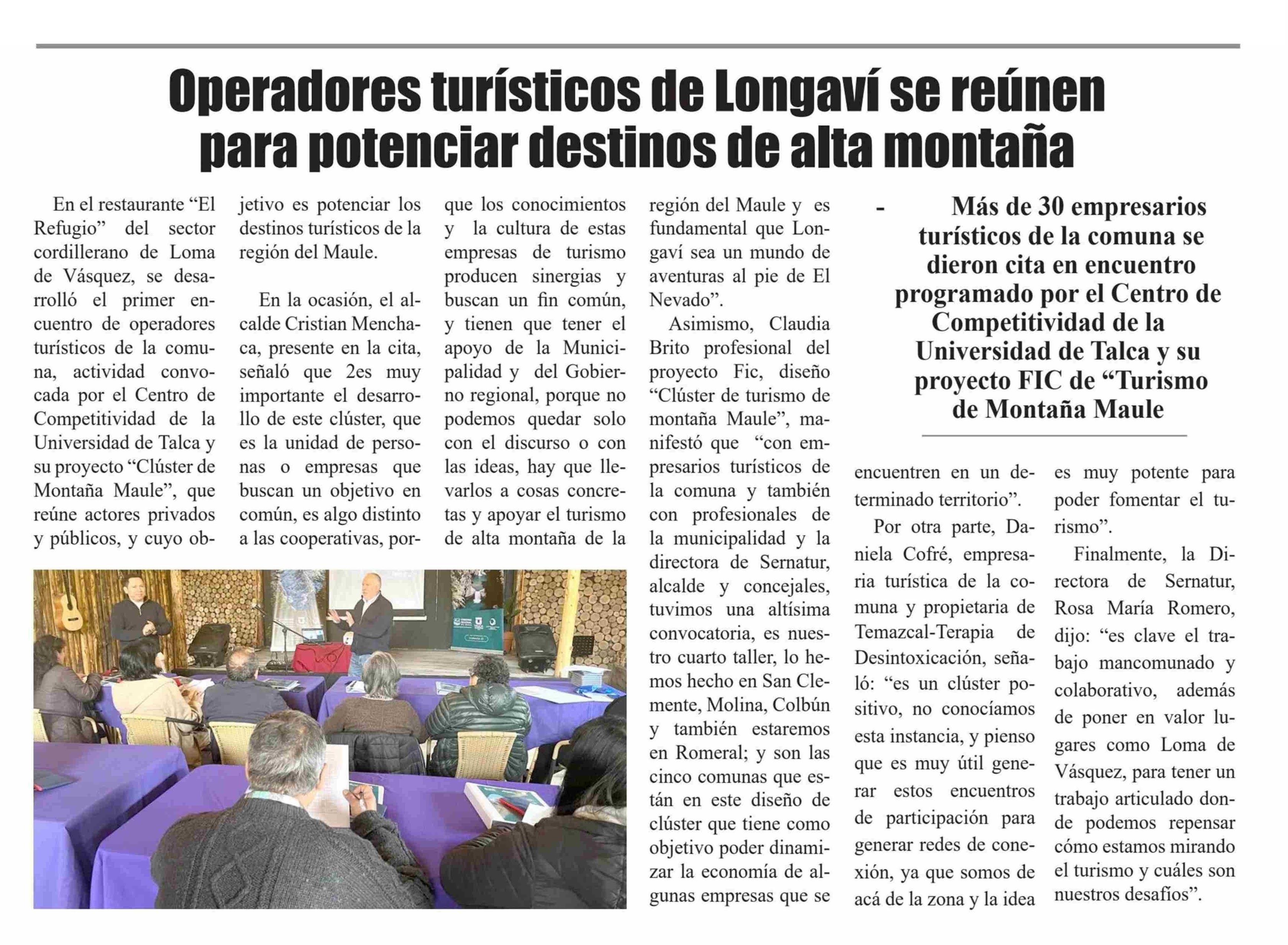| Título: | Operadores turísticos de Longaví se reúnen para potenciar destinos de alta montaña |