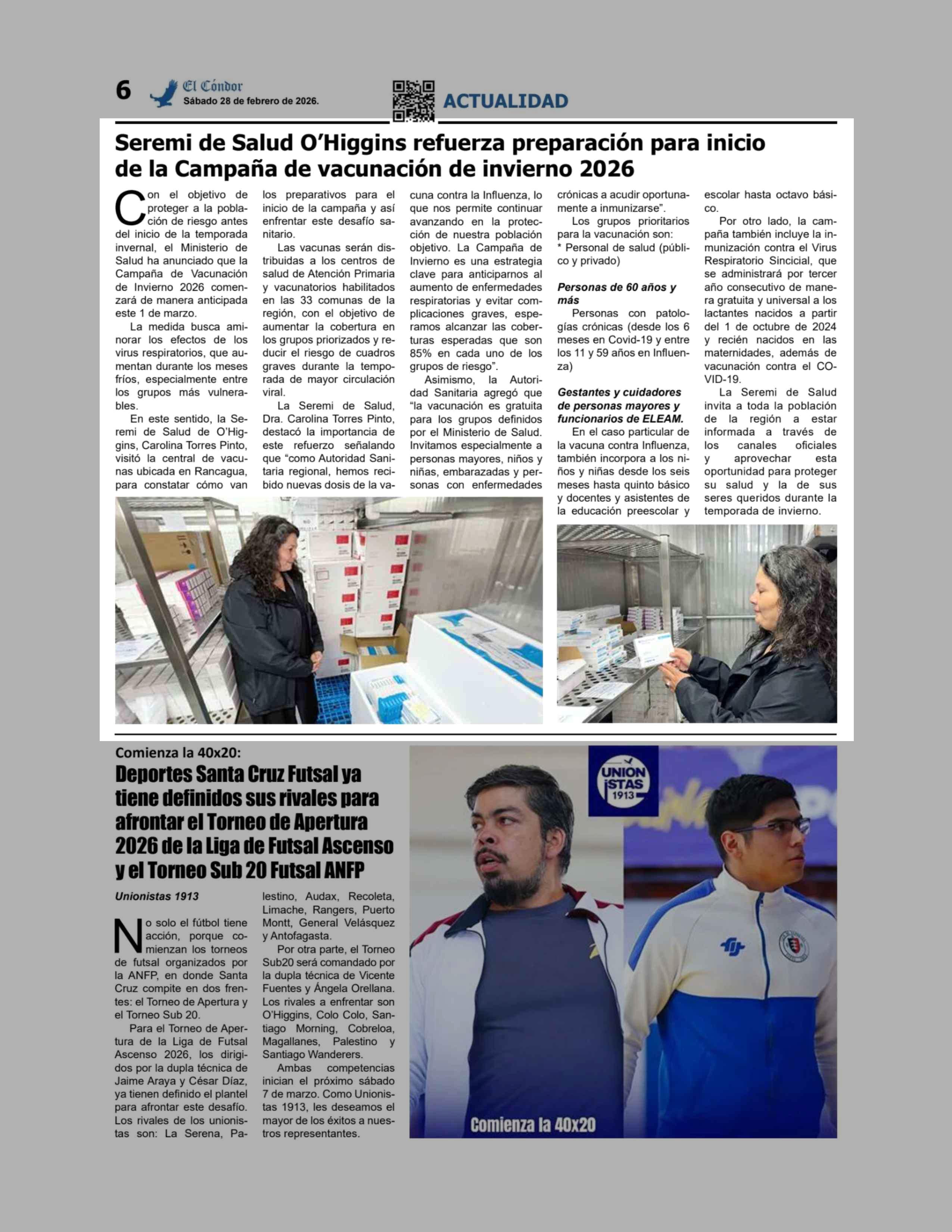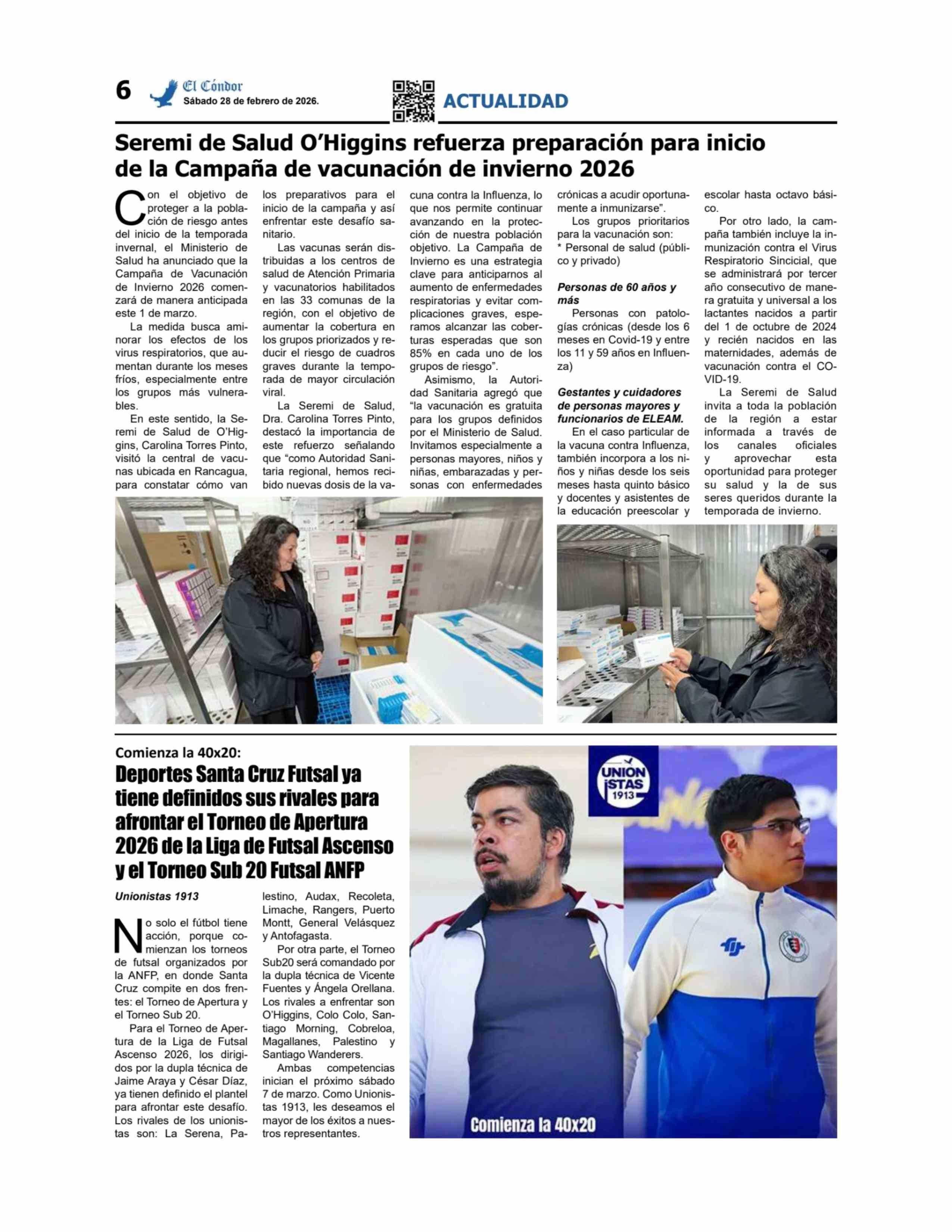 Seremi de Salud O'Higgins refuerza preparación para inicio de la Campaña de vacunación de invierno 2026 28-02-2026 Diario El Cóndor |
