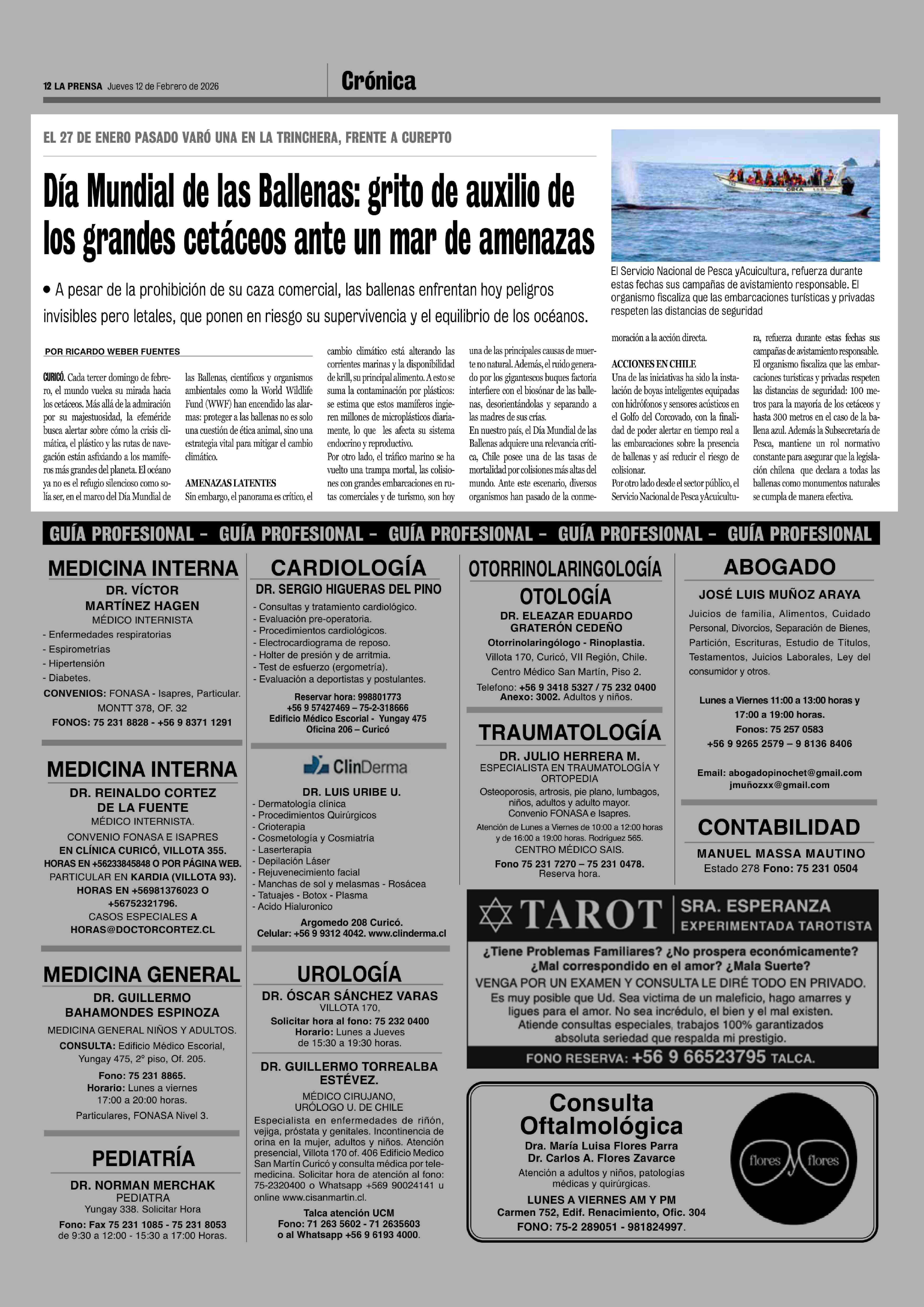 Día Mundial de las Ballenas: grito de auxilio de los grandes cetáceos ante un mar de amenazas 12-02-2026 La Prensa de Curicó |