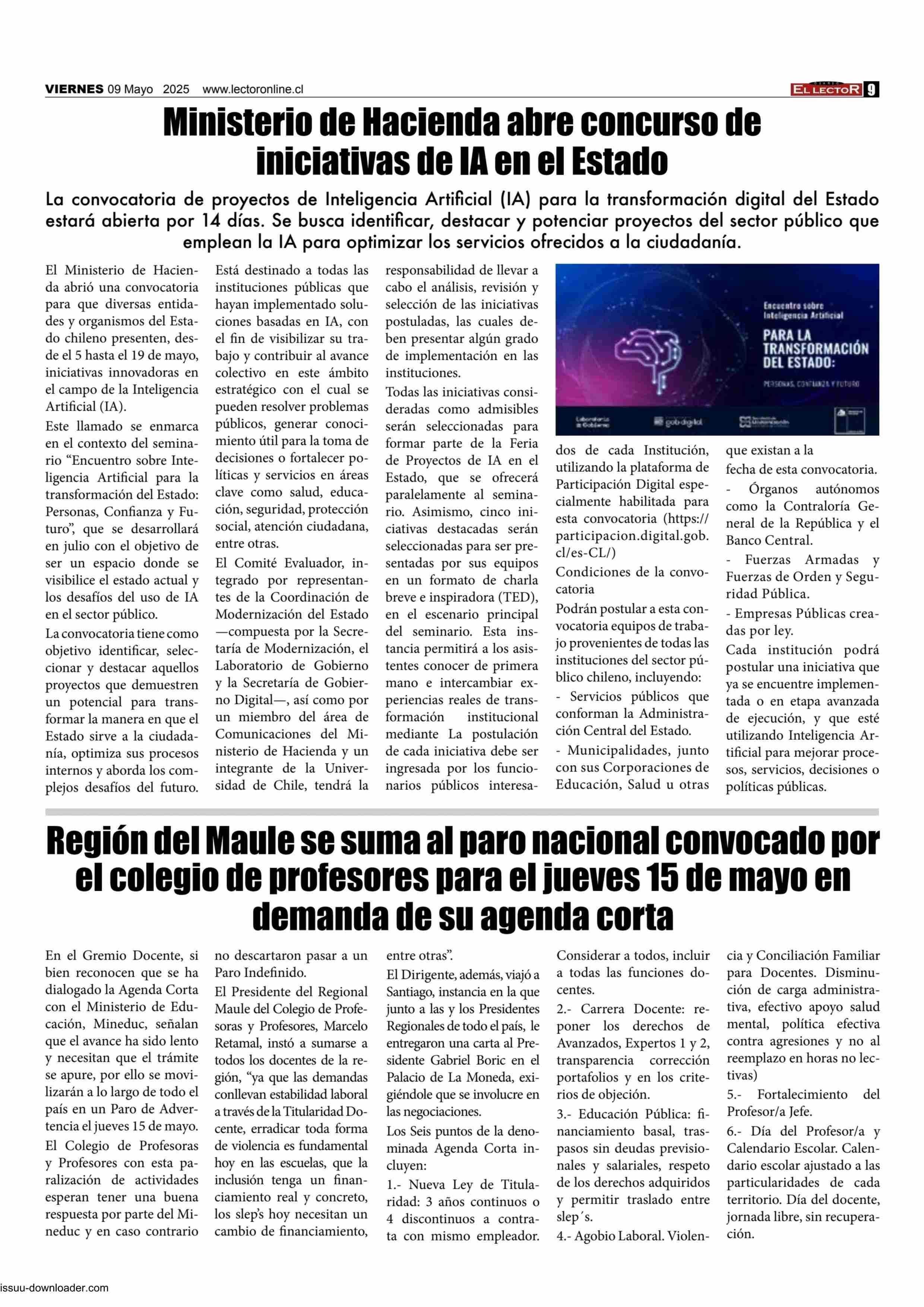 Ministerio de Hacienda abre concurso de iniciativas de lA en el Estado 09-05-2025 El Lector |