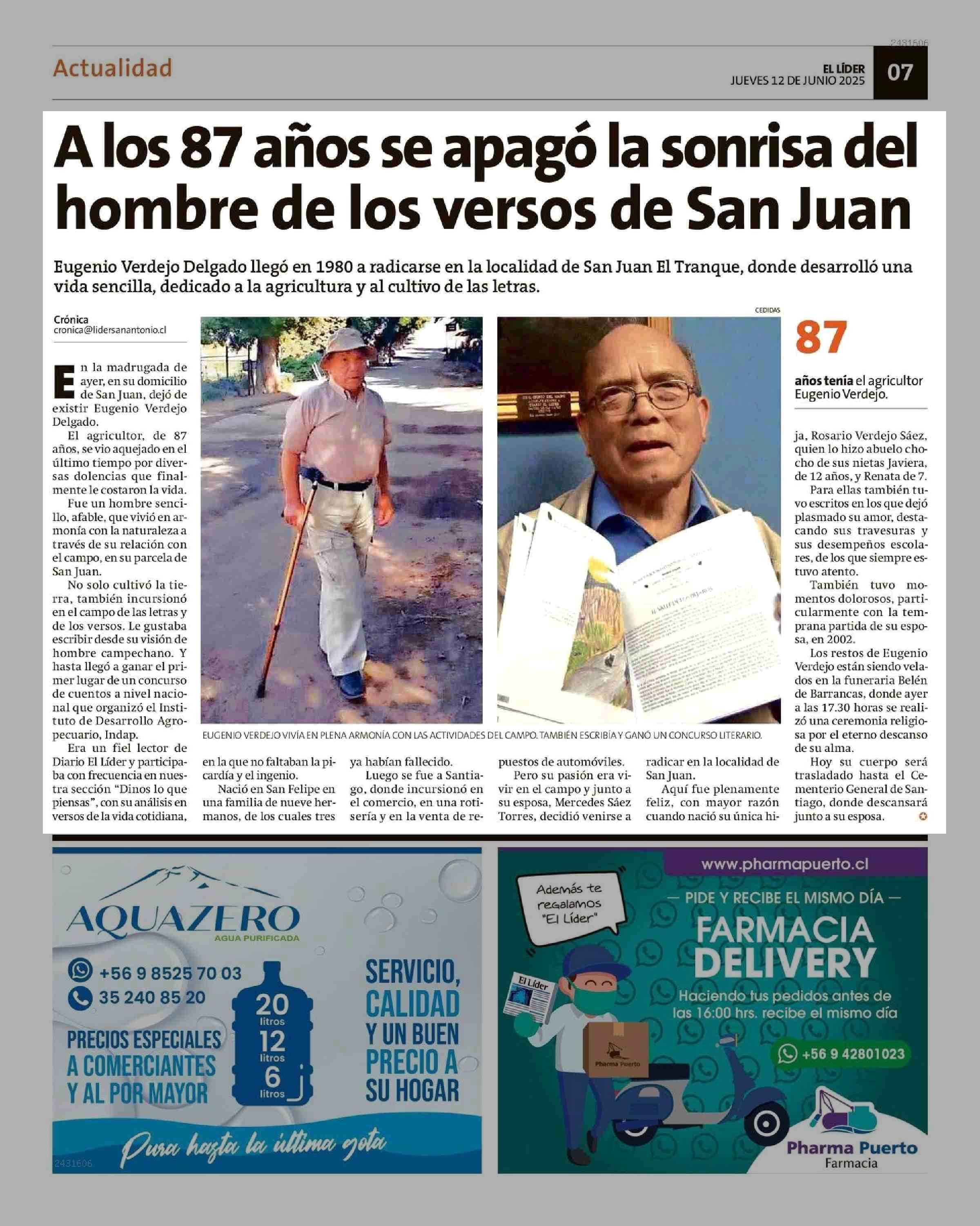 A los 87 años se apagó la sonrisa del hombre de los versos de San Juan 12-06-2025 El Líder |