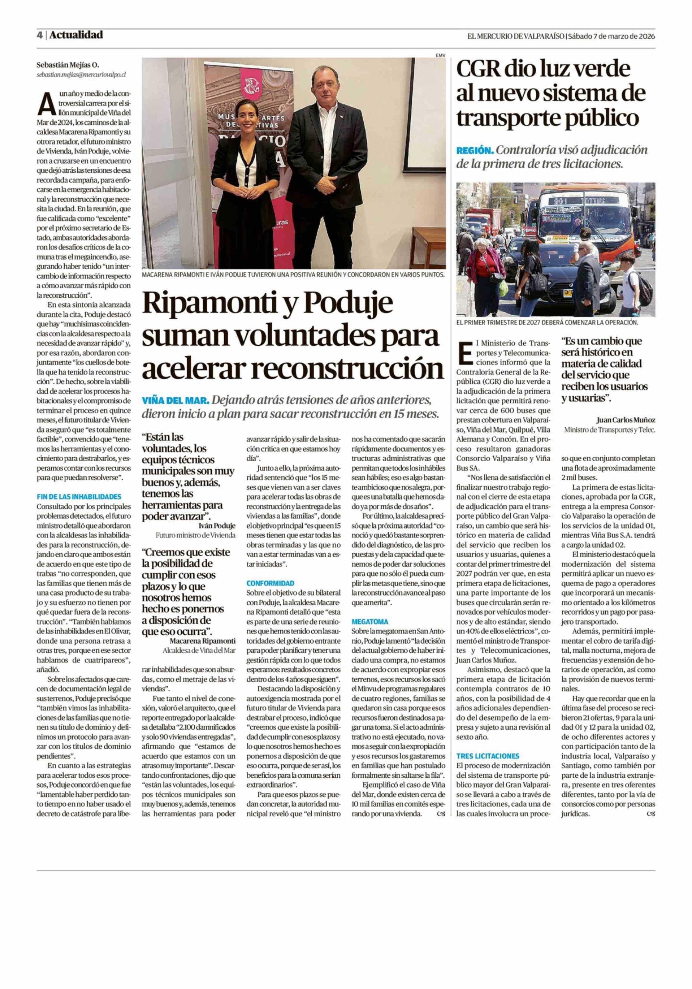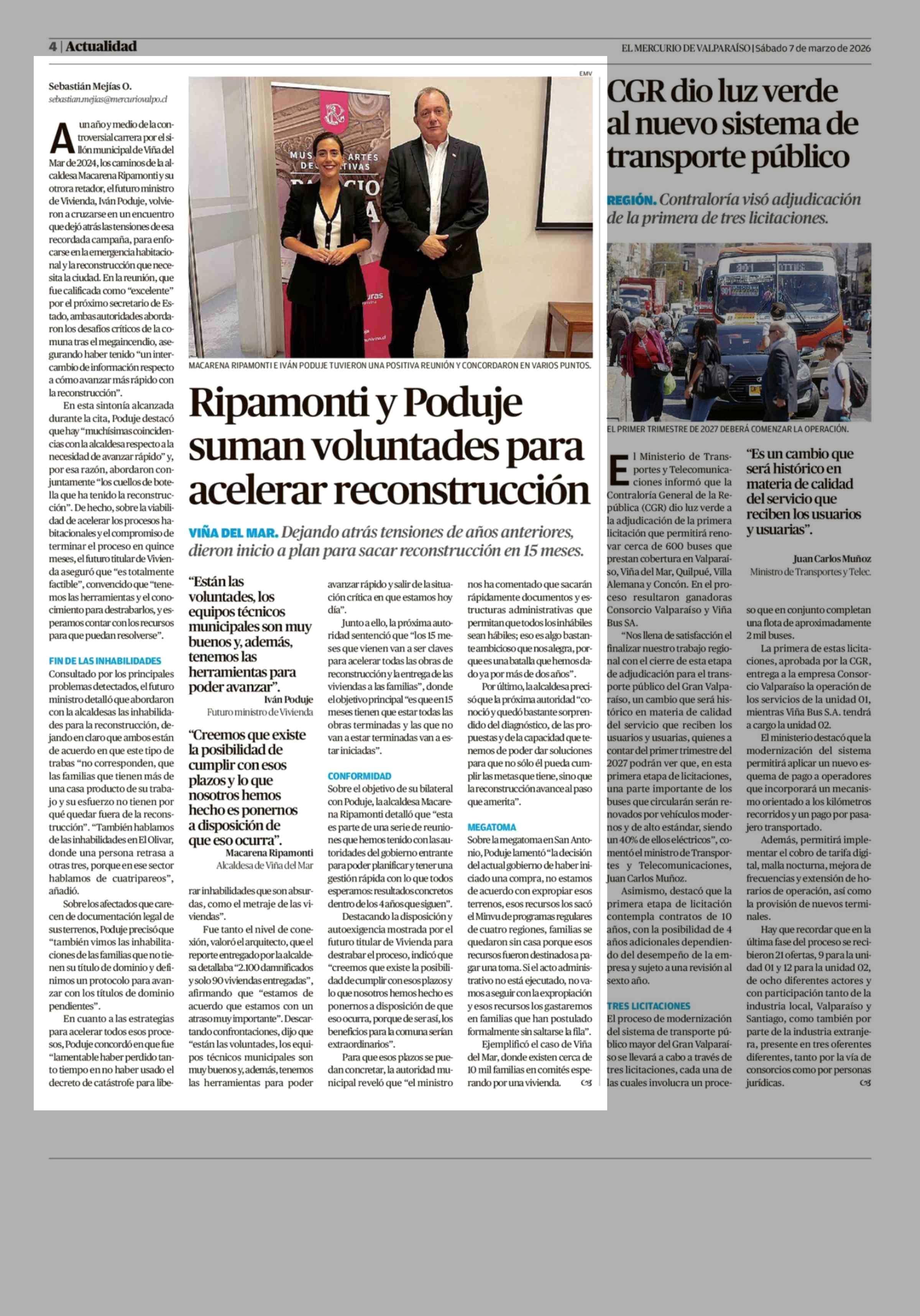 Título: Ripamonti y Poduje suman voluntades para acelerar reconstrucción