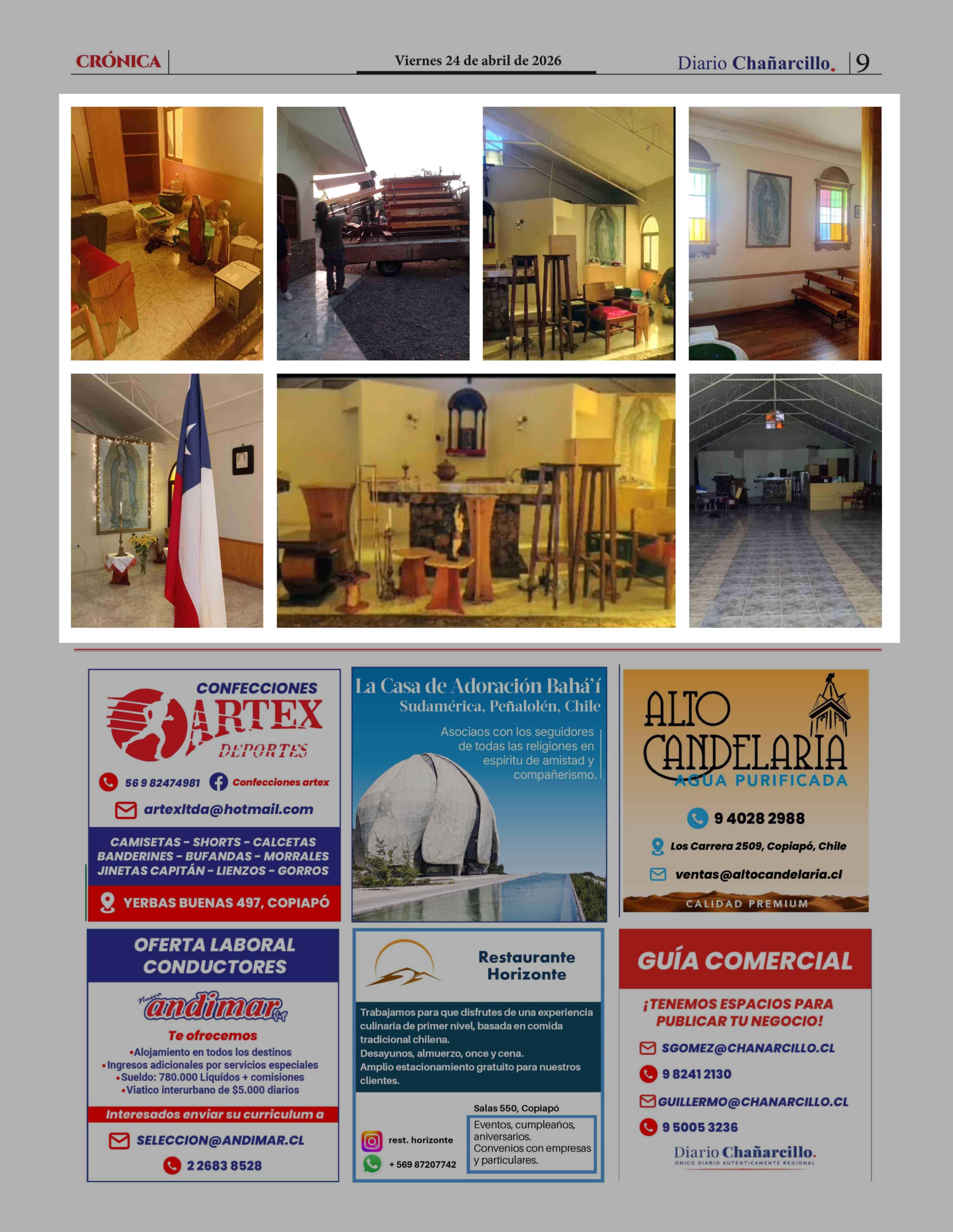 Desalojo de la Capilla Guadalupe: 40 años de historia comunitaria llegan a un abrupto final 24-04-2026 Diario Chañarcillo |