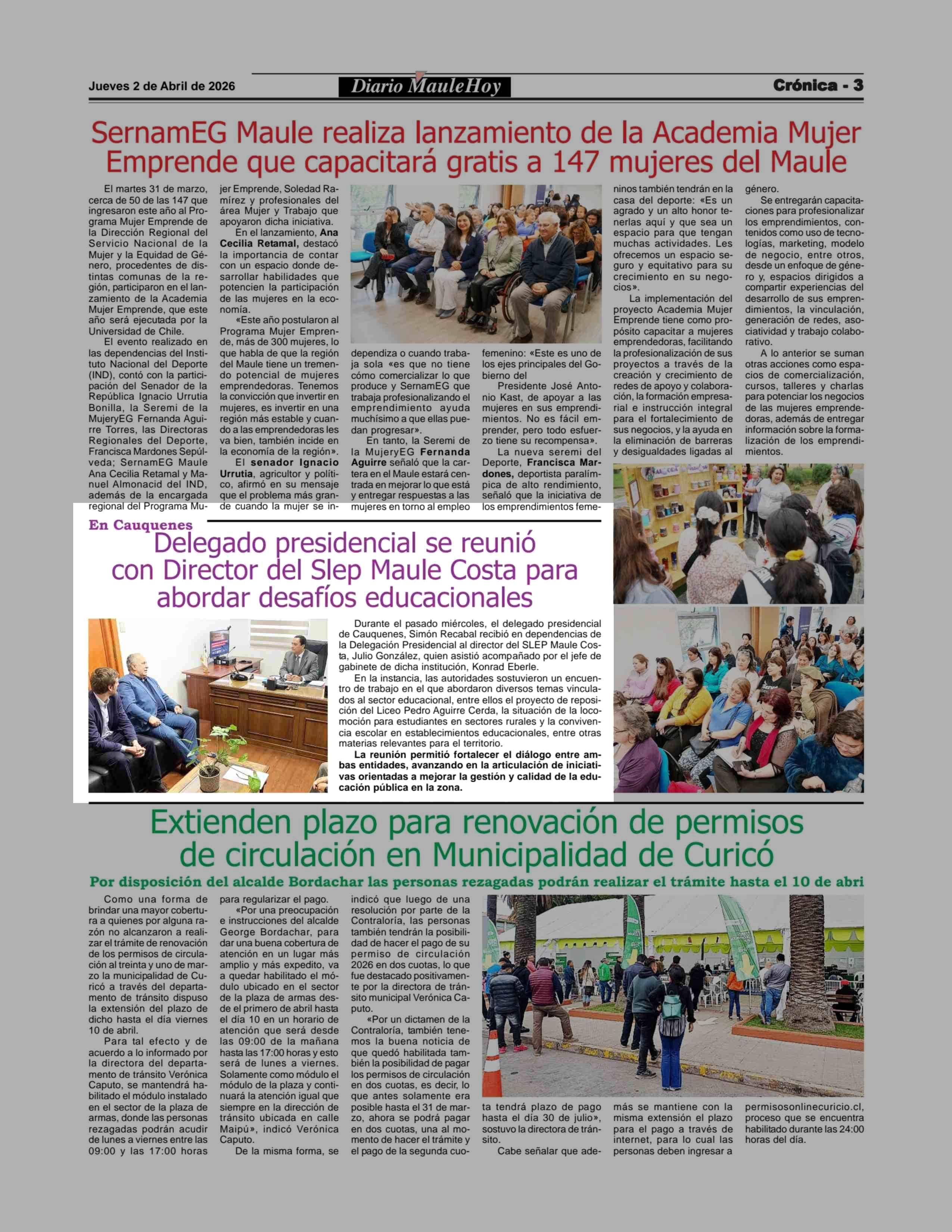 Fecha: 02-04-2026 Sector: Noticia general Región: Región del Maule