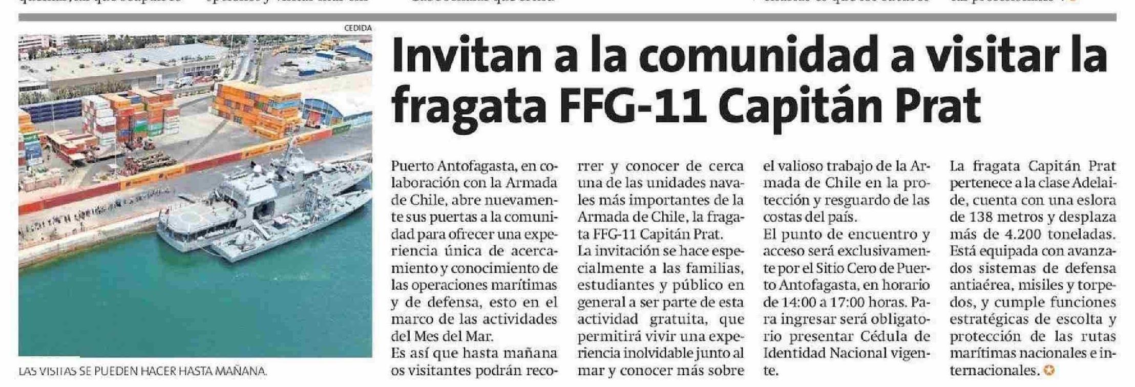 EEG Invitan a la comunidad a visitar la fragata FFG-11 Capitán Prat 19-05-2025 La Estrella de Antofagasta |