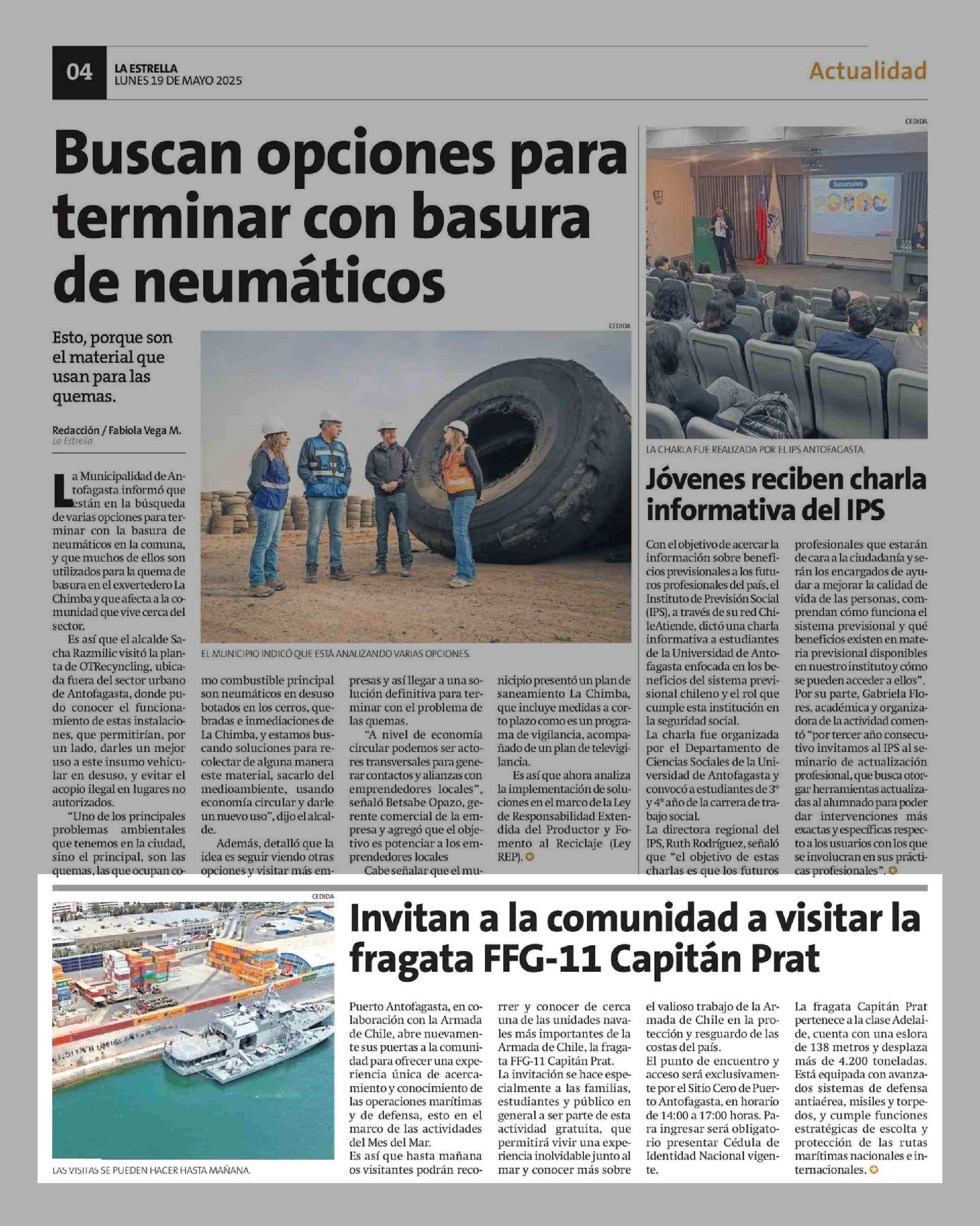 | Fecha: | 19-05-2025 | Sector: | Noticia general | Región: | Región de Antofagasta |