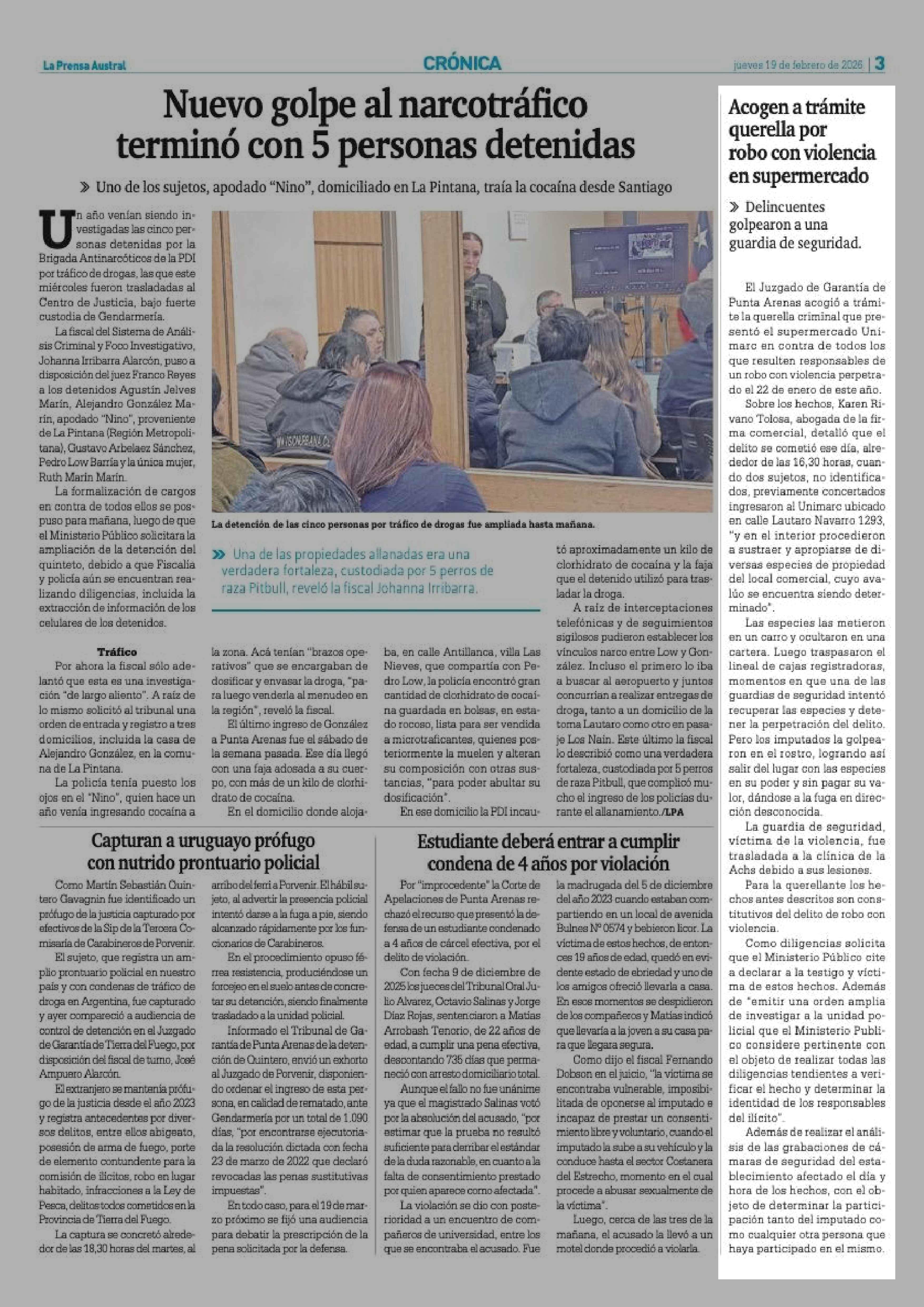 | Fecha: | 19-02-2026 | Sector: | Noticia general | Región: | Región de Magallanes y de la Antártica Chilena |