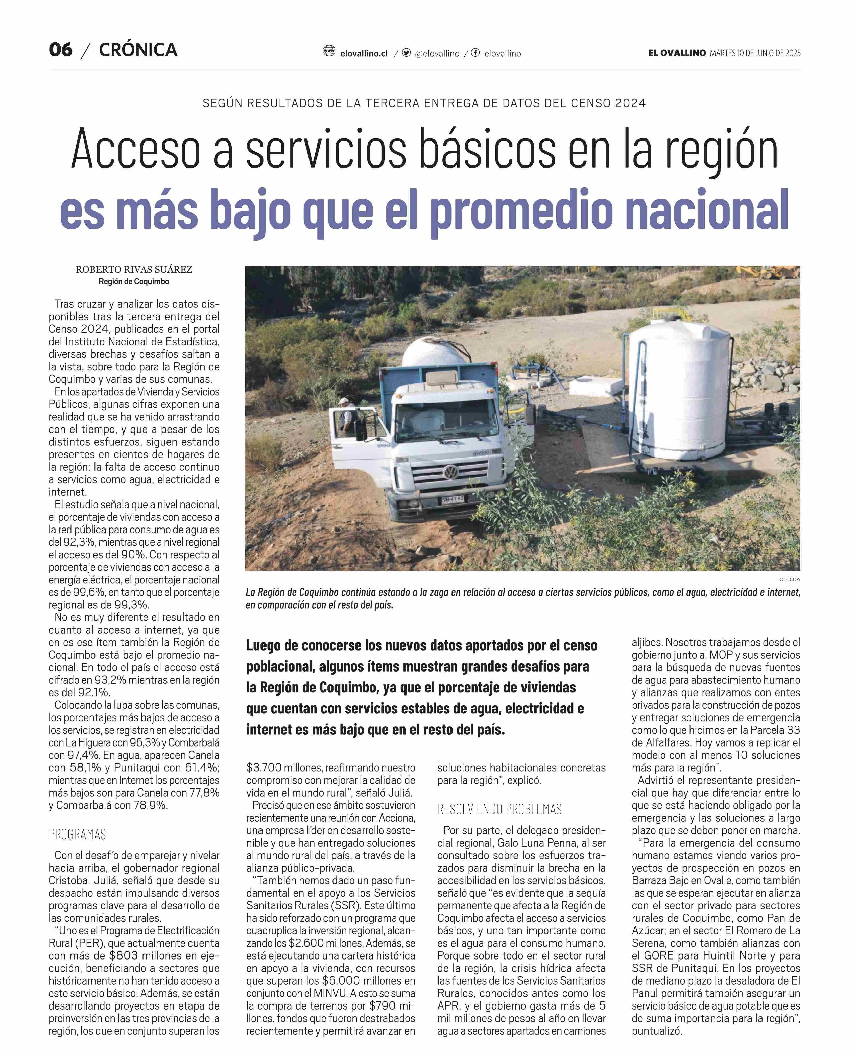 Acceso a servicios básicos en la región es más bajo que el promedio nacional 10-06-2025 El Ovallino |