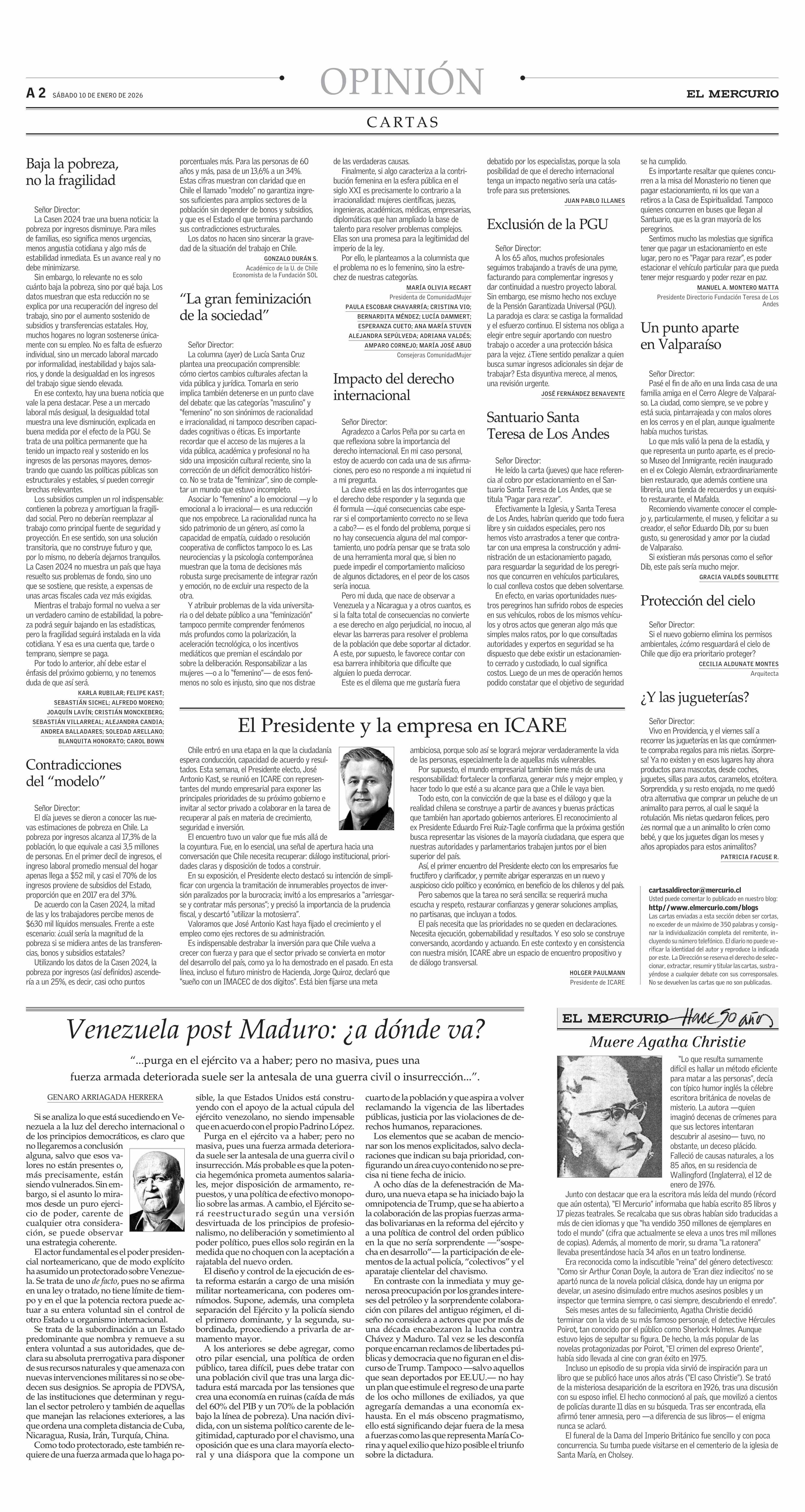 Cartas: “La gran feminización de la sociedad” 10-01-2026 El Mercurio |