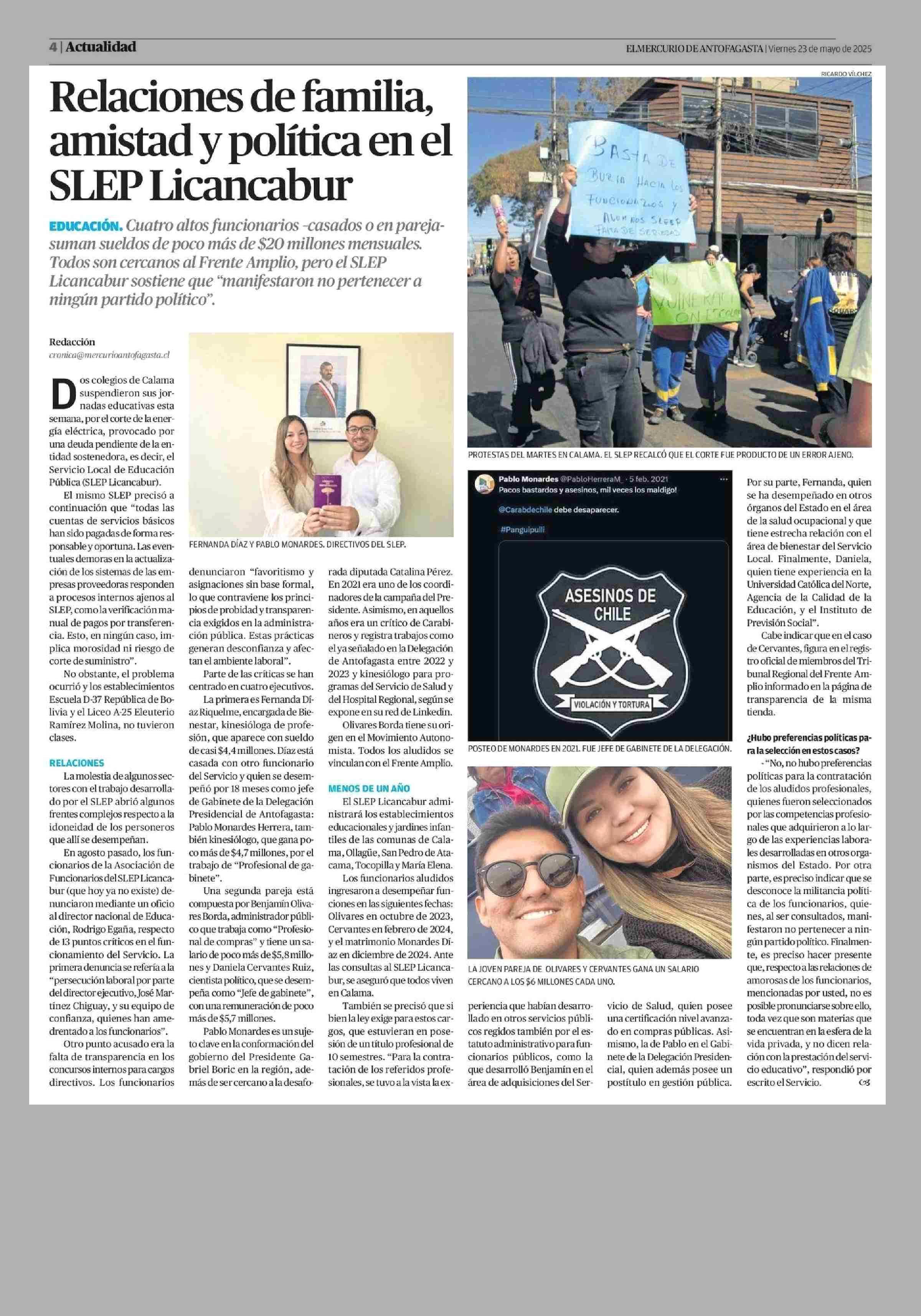 Relaciones de familia, amistad y política en el SLEP Licancabur 23-05-2025 El Mercurio de Antofagasta |