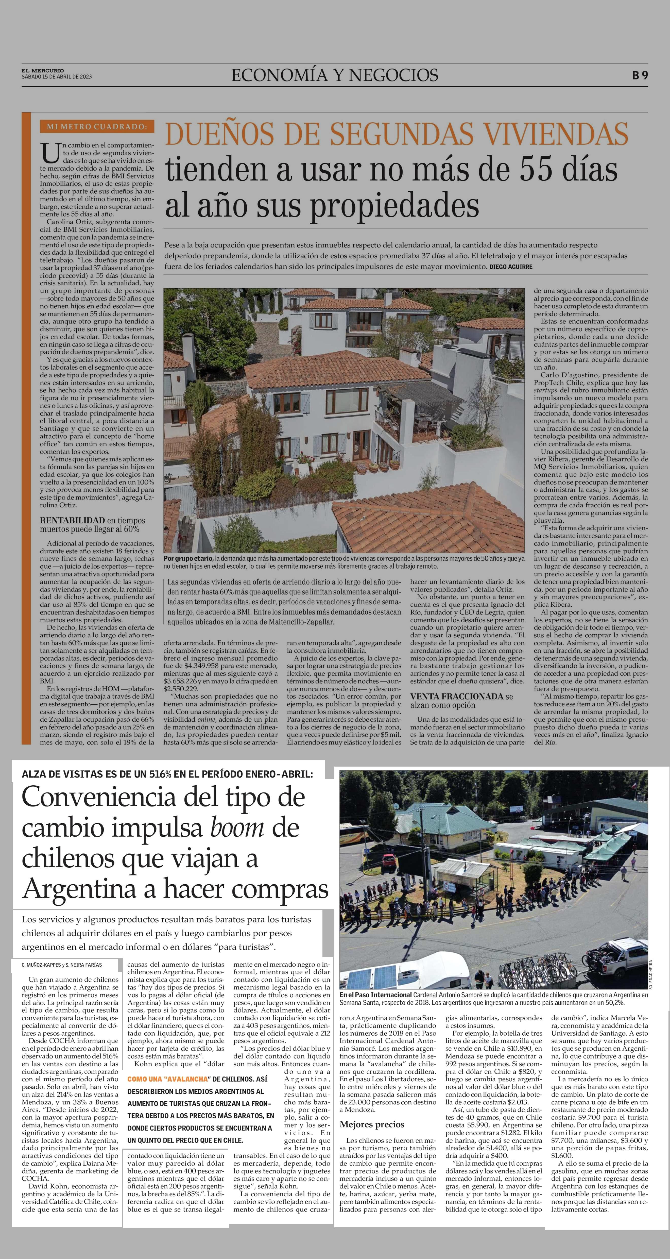 Conveniencia del tipo de cambio impulsa boom de chilenos que viajan a Argentina a hacer compras 15-04-2023 El Mercurio |
