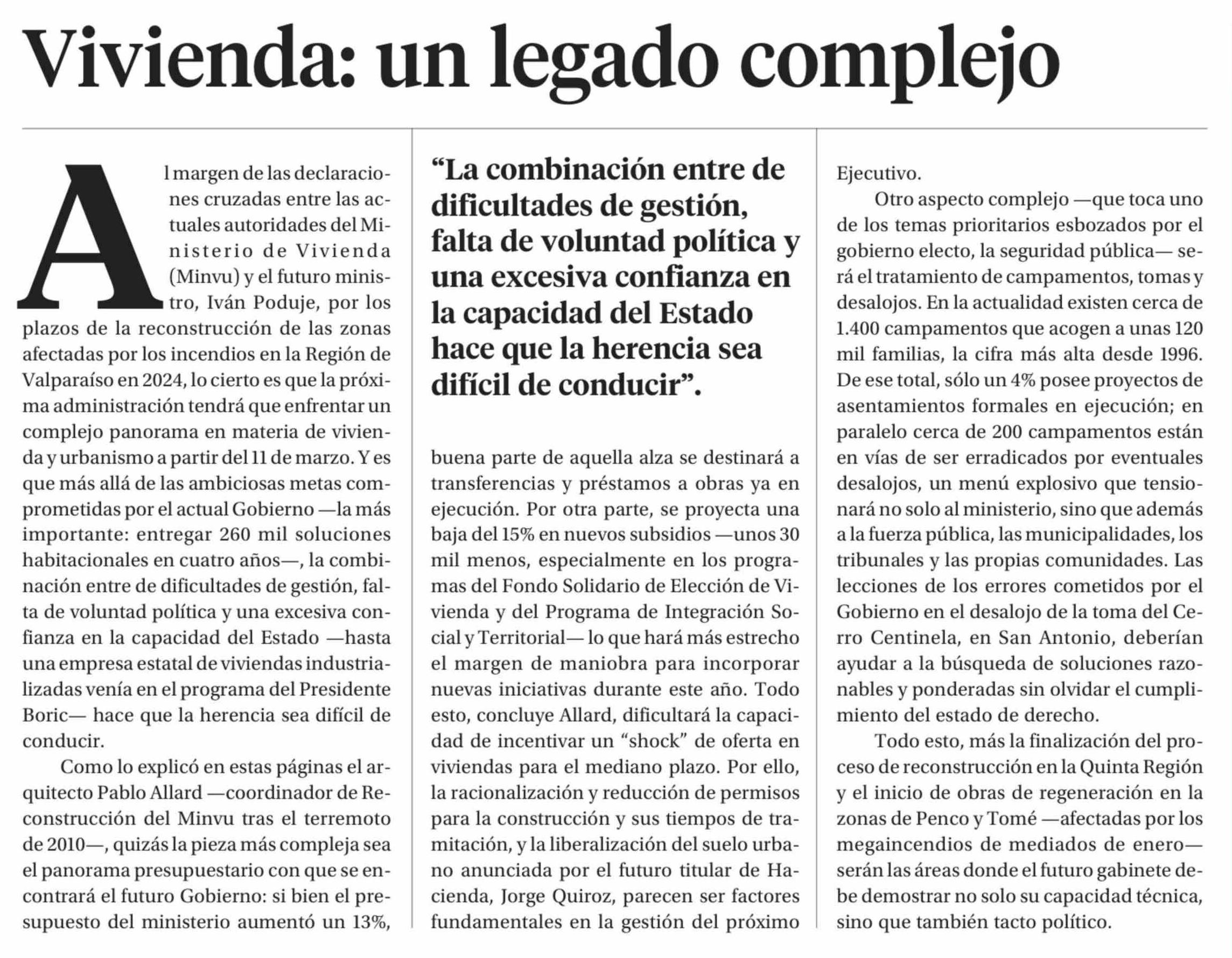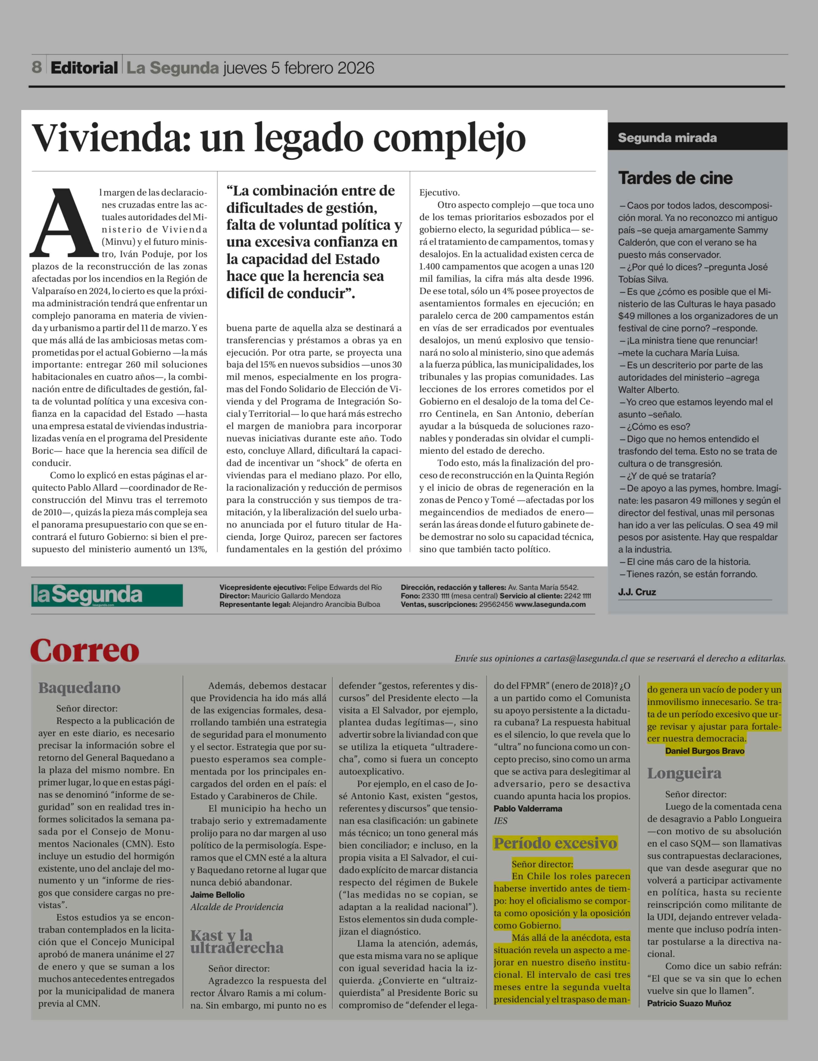 Editorial: Vivienda: un legado complejo 05-02-2026 La Segunda |