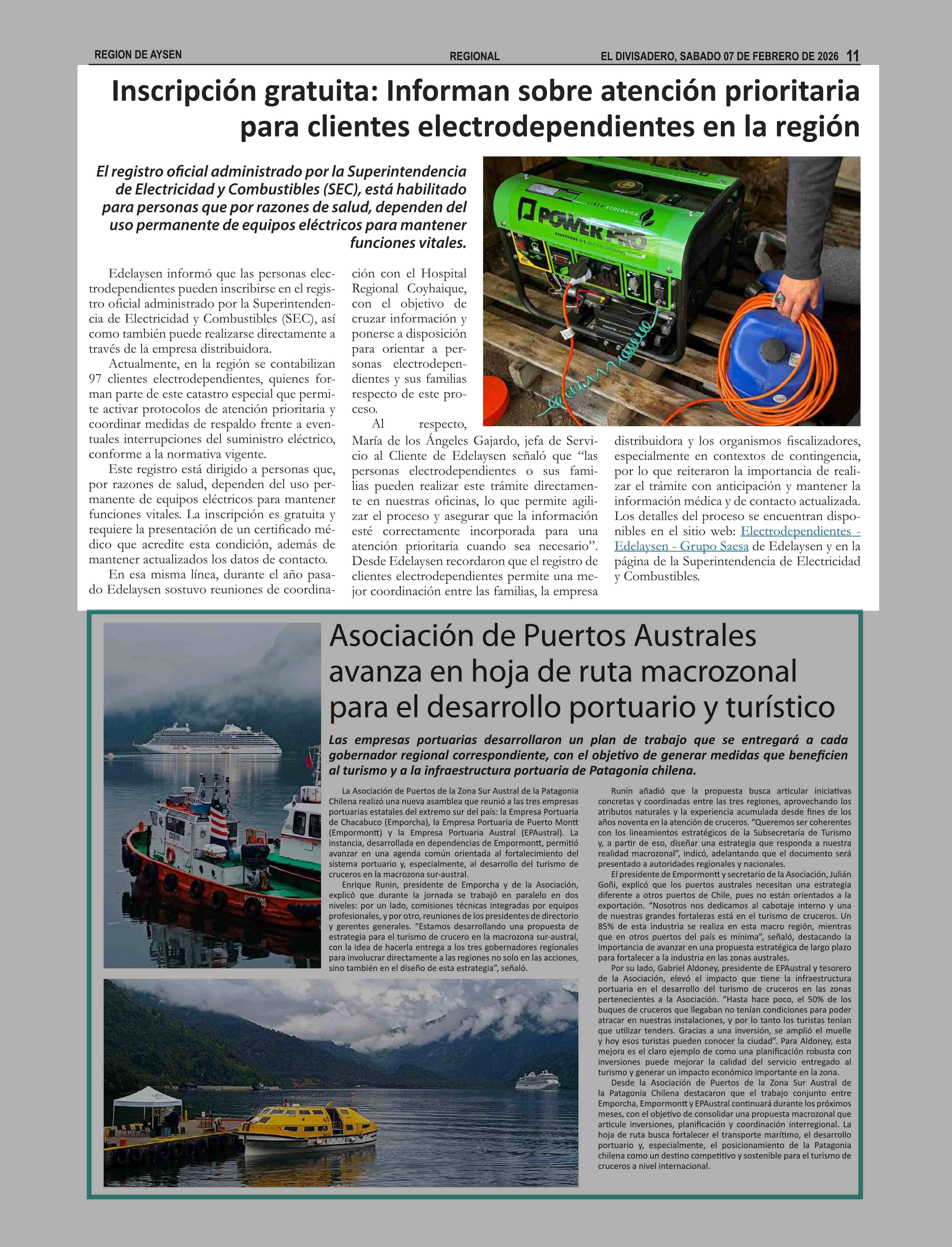 Fecha: 07-02-2026 Sector: Noticia general Región: Región Aysén del General Carlos Ibáñez del Campo