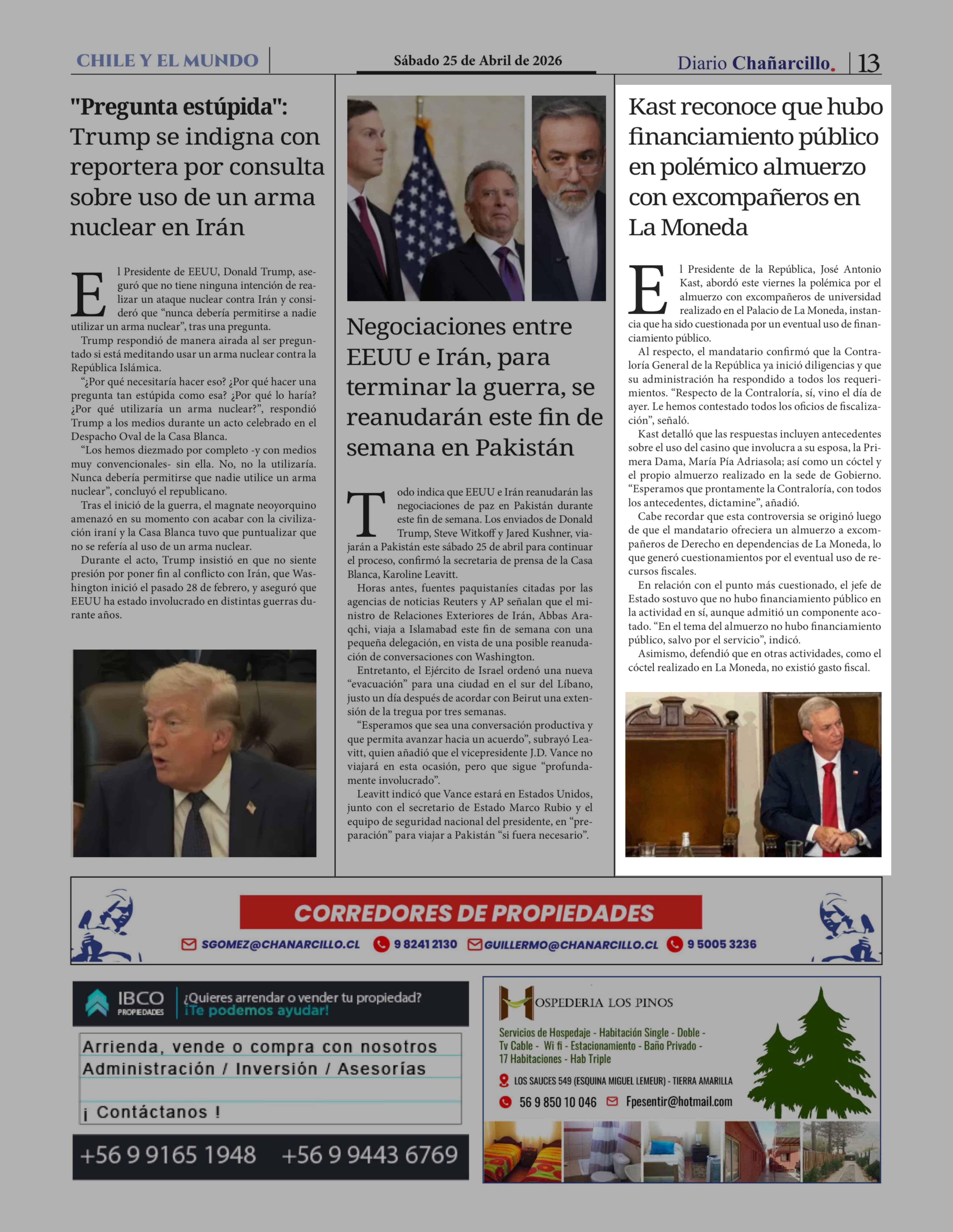 Fuente: Diario Chañarcillo (Diario Chanarcillo) Página(s): 13