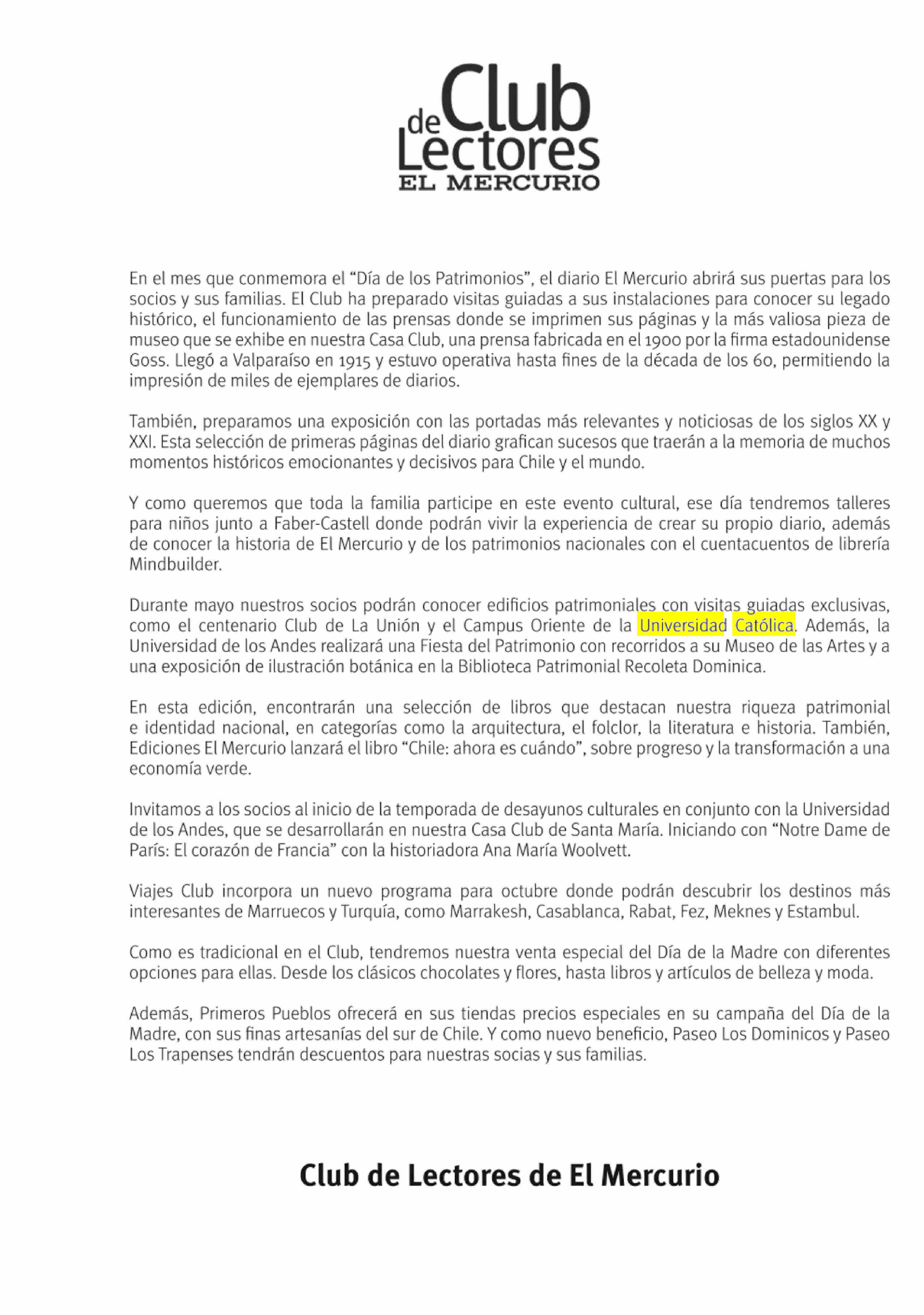 Club de Lectores de El Mercurio 04-05-2025 El Mercurio |