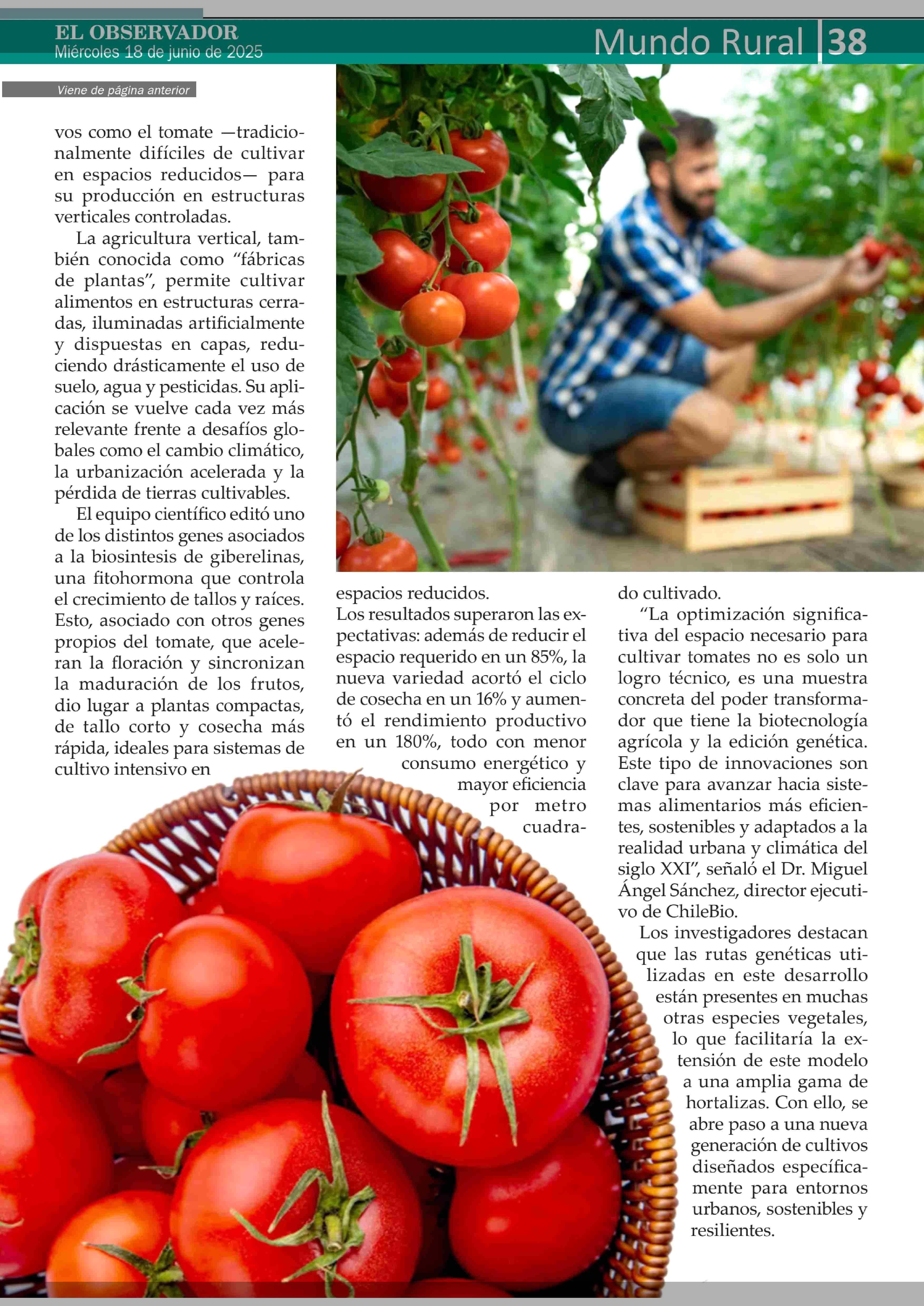 Título: Crean tomate editado editado genéticamente que se adapta a crecer en espacios pequeños