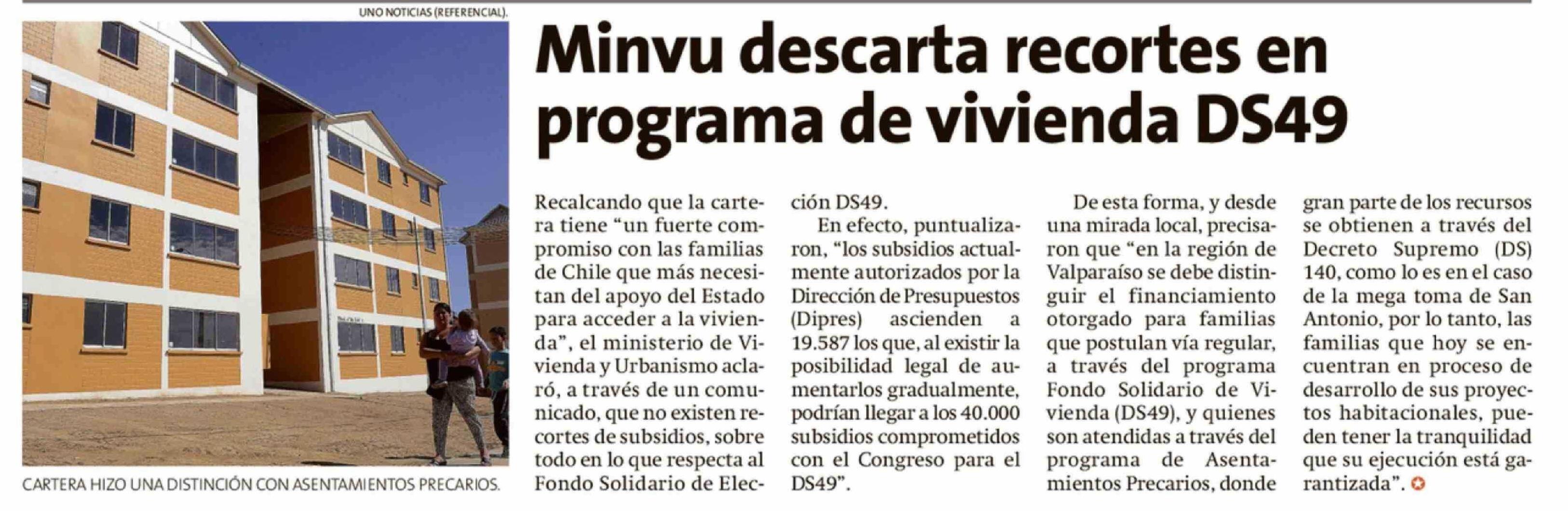| Título: | Minvu descarta recortes en programa de vivienda DS49 |