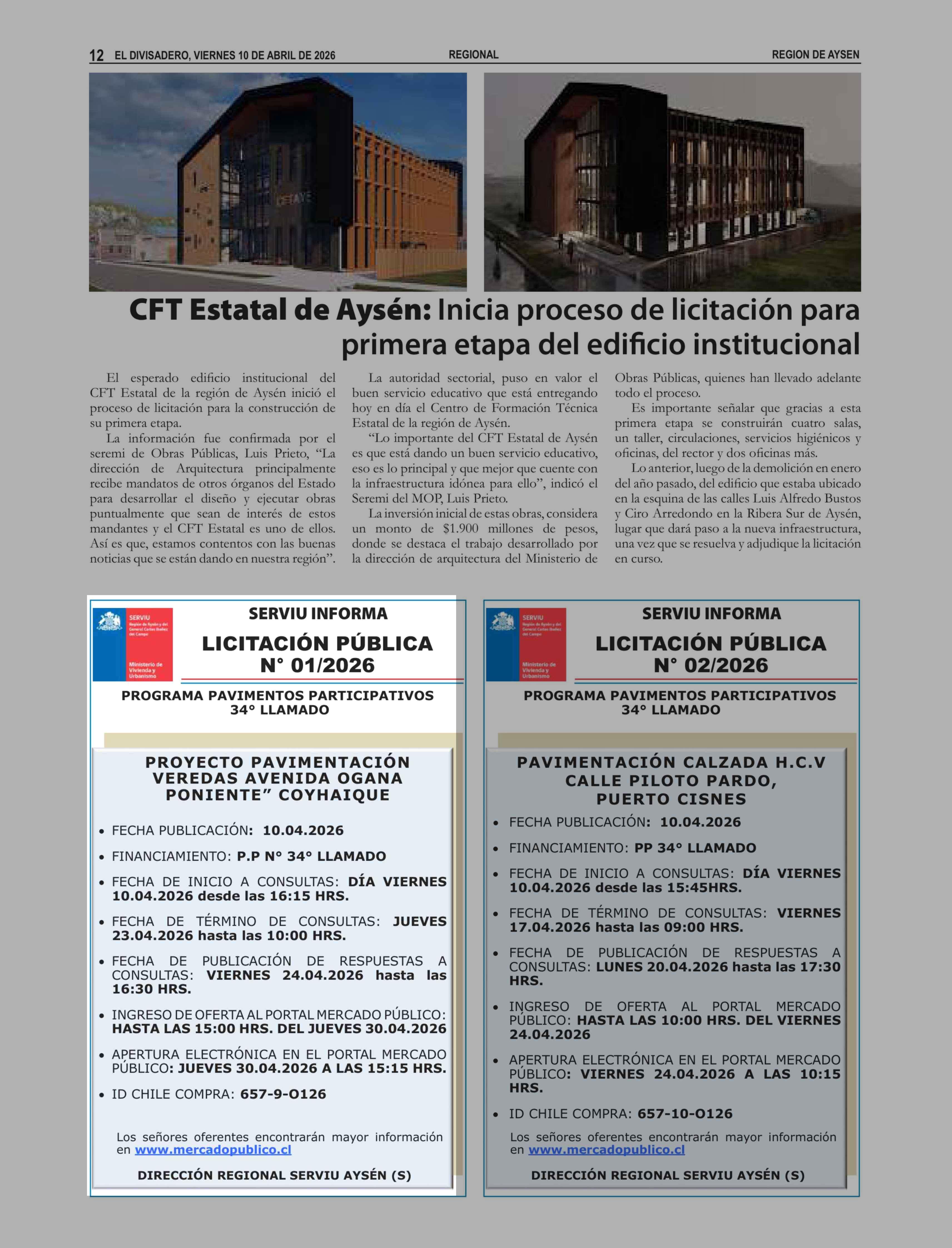 | Fecha: | 10-04-2026 | Sector: | Aviso Licitaciones | Región: | Región Aysén del General Carlos Ibáñez del Campo |