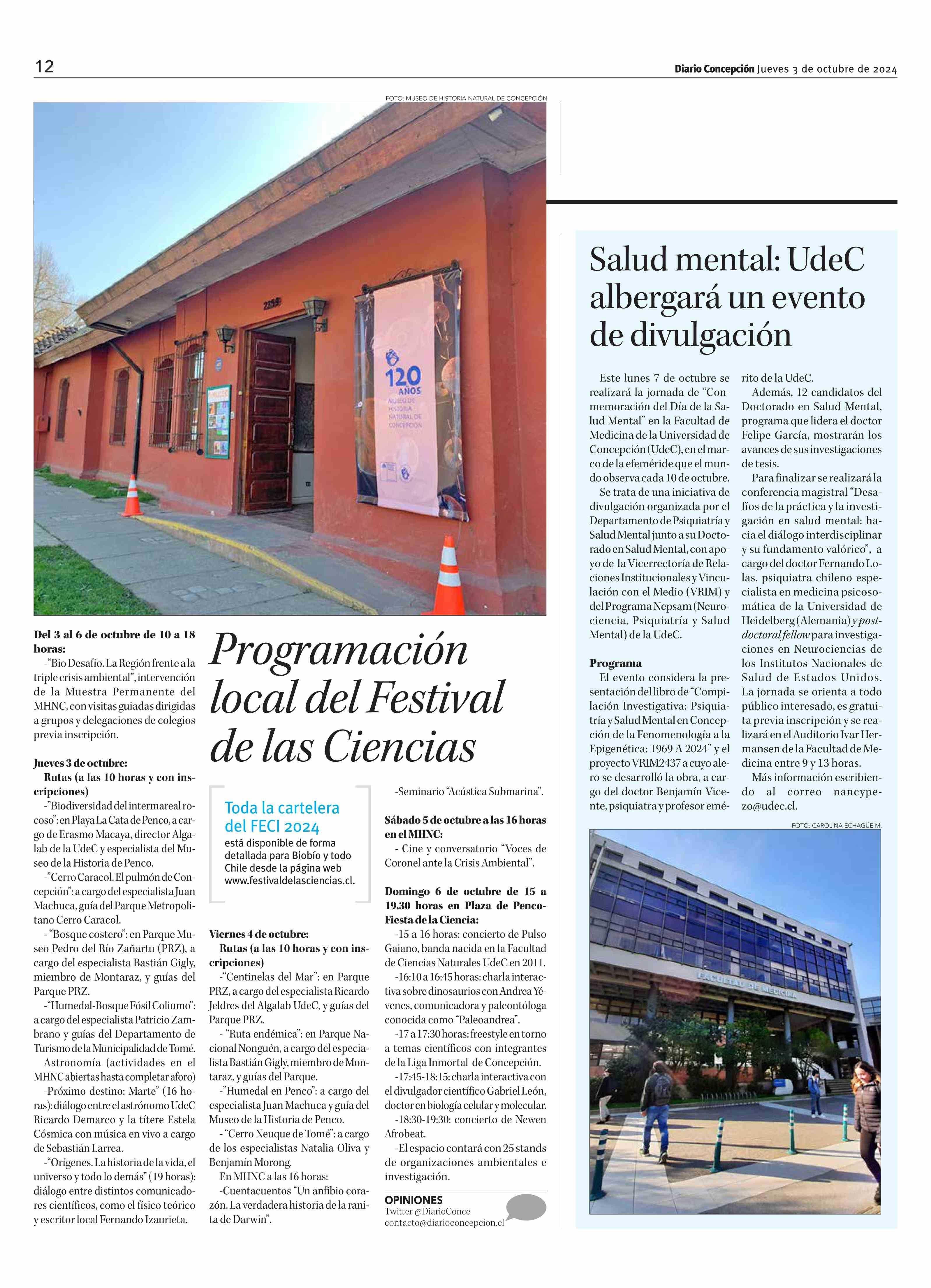 Salud mental: UdeC albergará un evento de divulgación 03-10-2024 Diario Concepción |