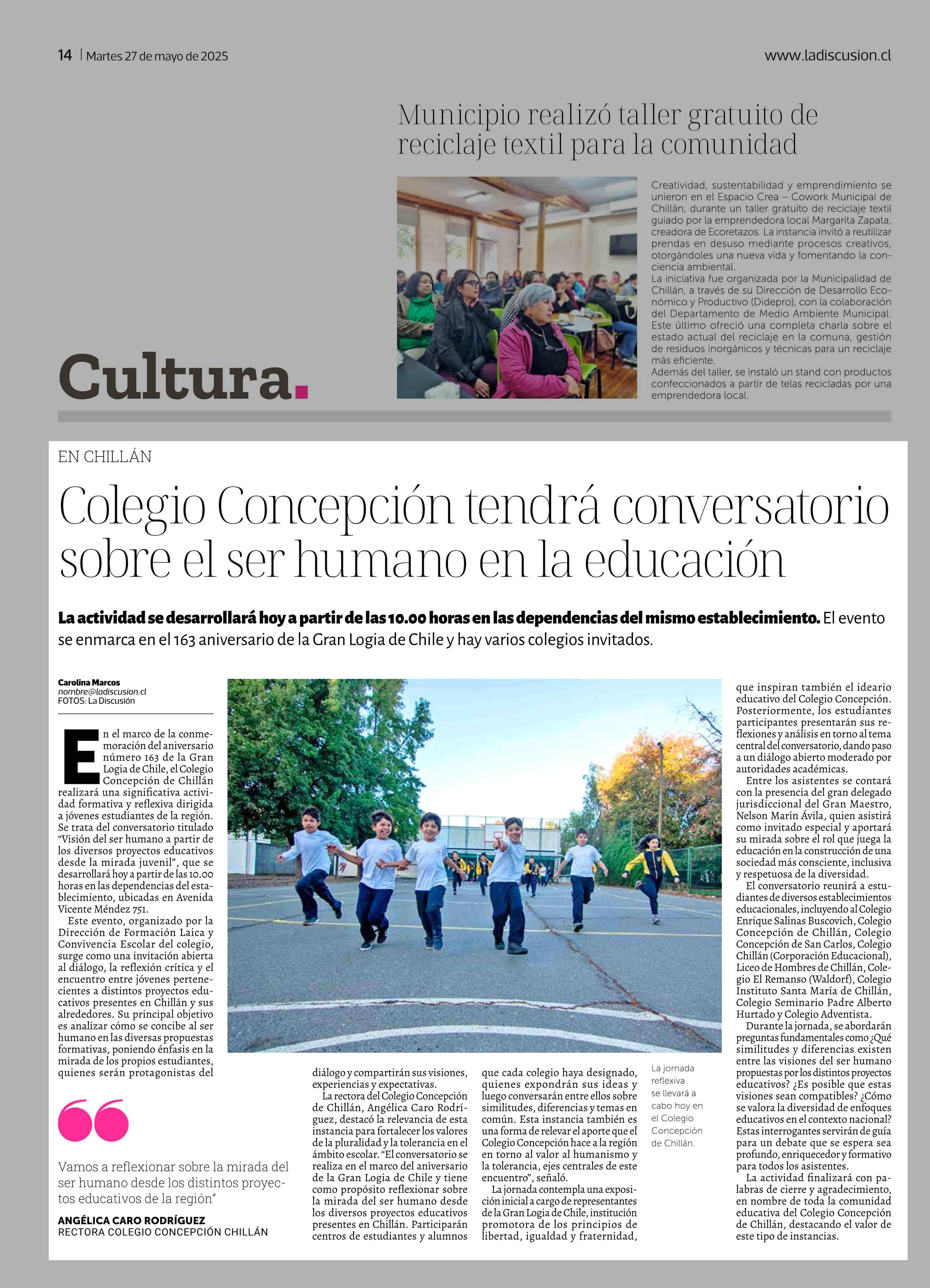 Colegio Concepción tendrá conversatorio sobre el ser humano en la educación 27-05-2025 La Discusión |
