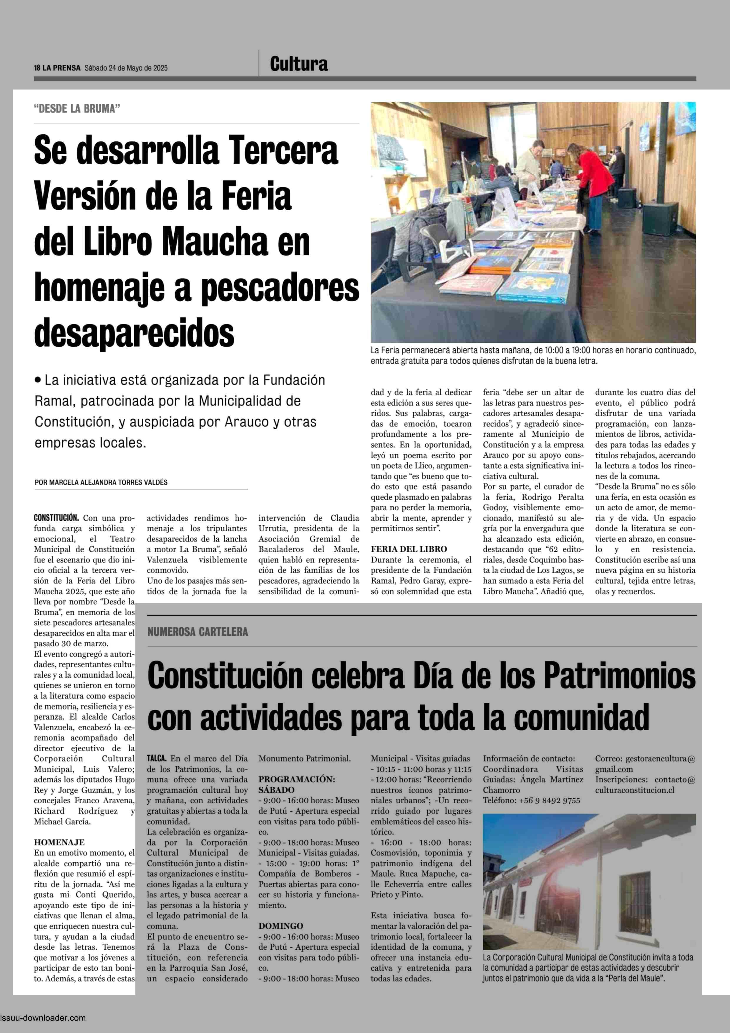 Se desarrolla Tercera Versión de la Feria del Libro Maucha en homenaje a pescadores desaparecidos 24-05-2025 La Prensa de Curicó |
