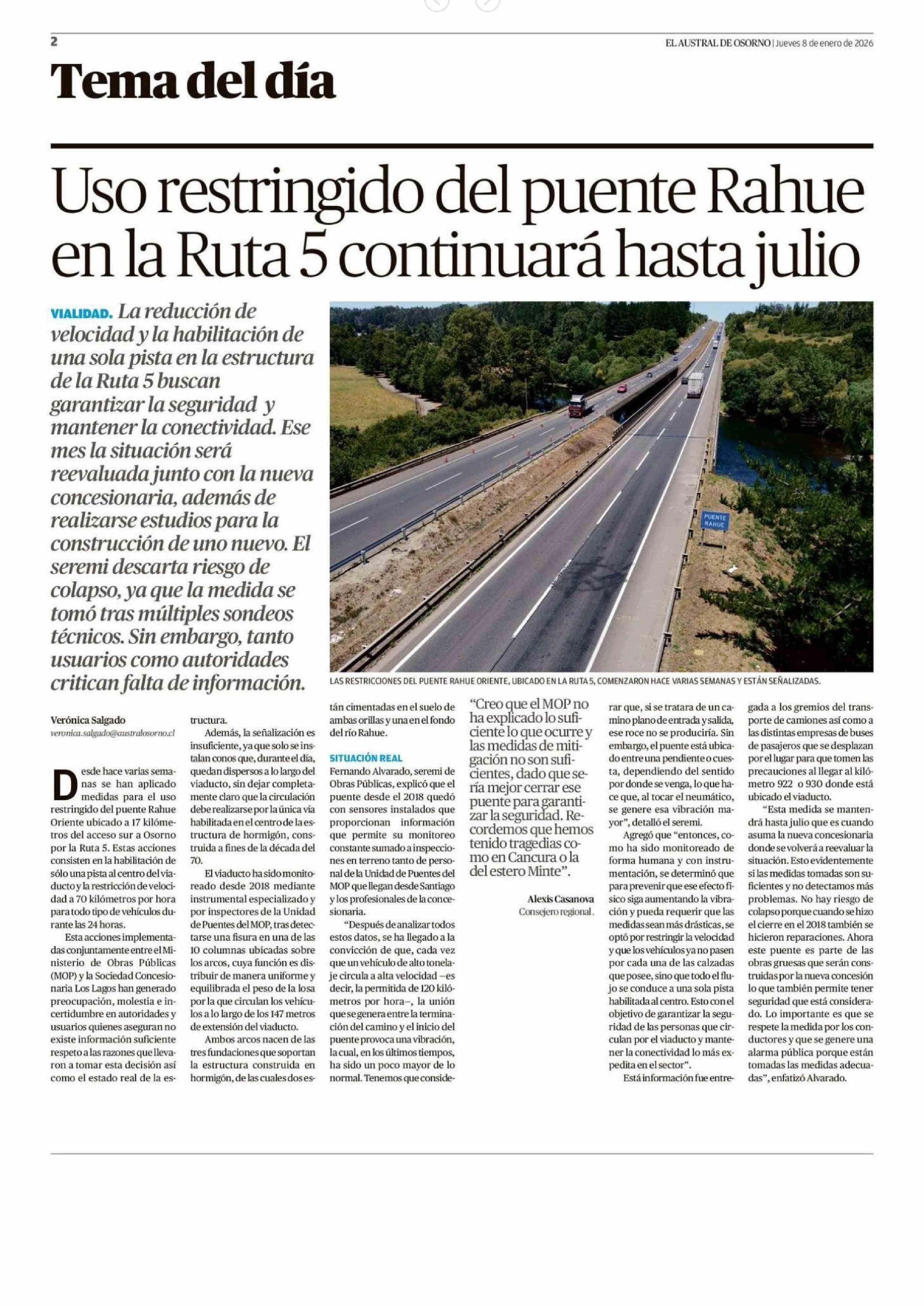 | Título: | Uso restringido del puente Rahue en la Ruta 5 continuará hasta julio |