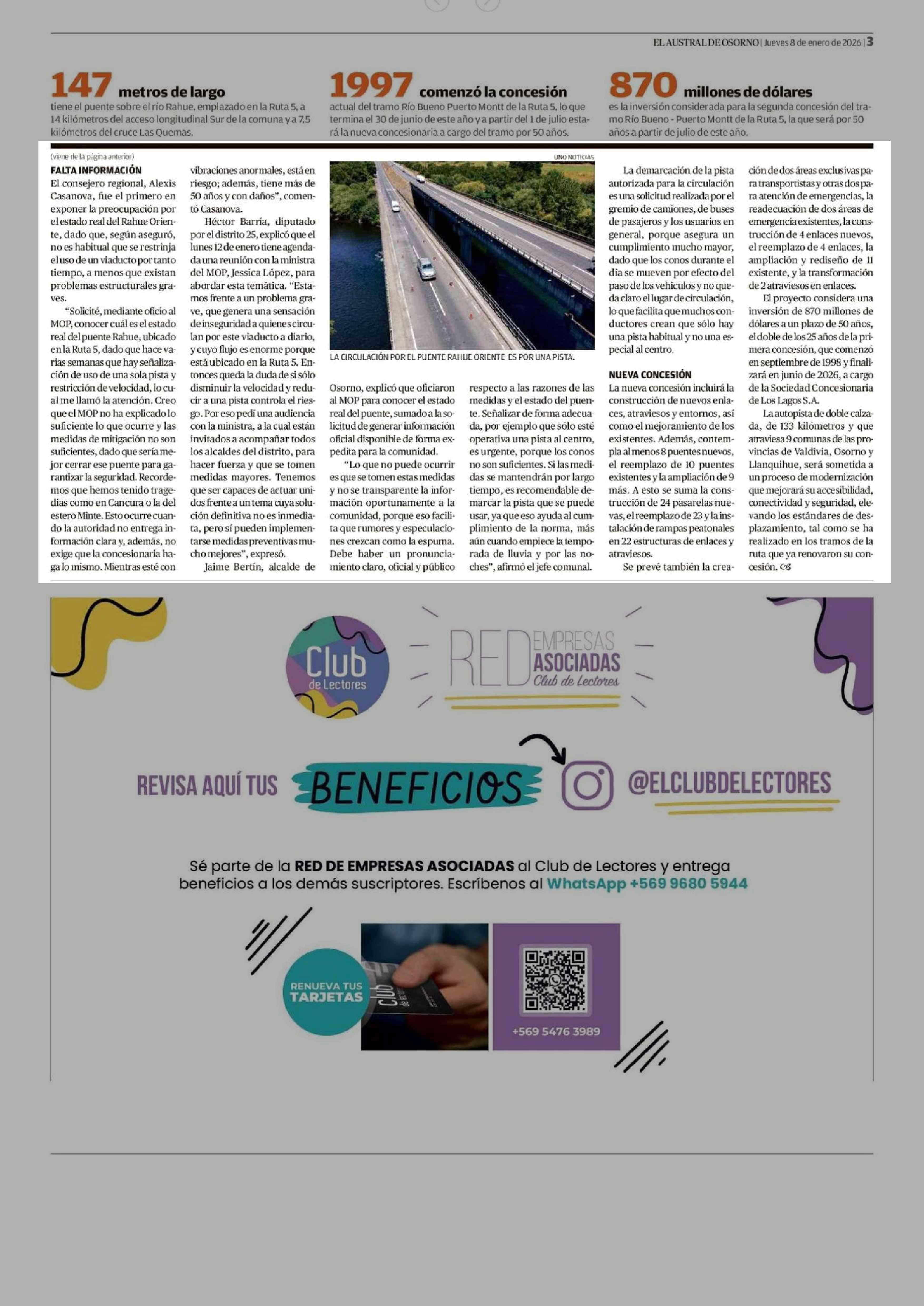 Uso restringido del puente Rahue en la Ruta 5 continuará hasta julio 08-01-2026 El Austral de Osorno |