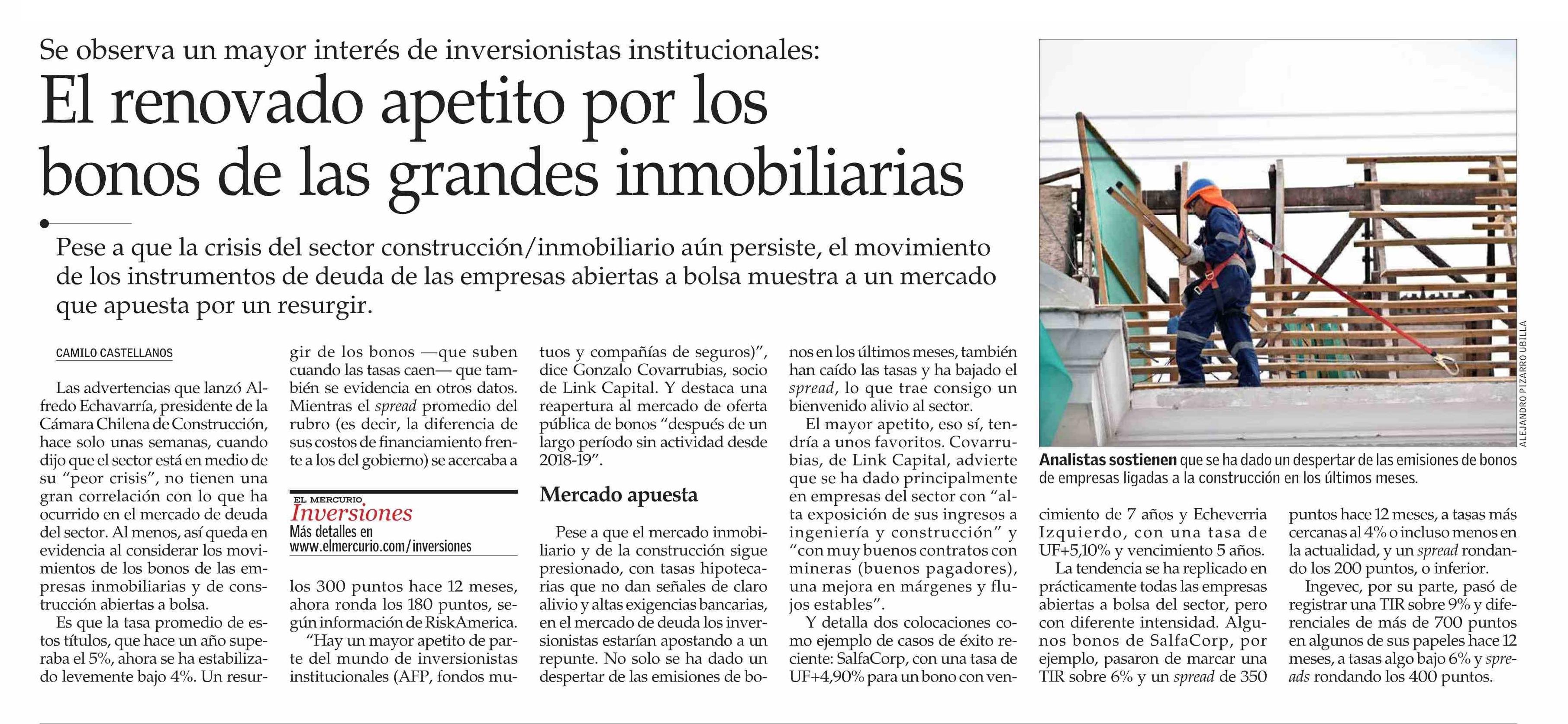 El renovado apetito por los bonos de las grandes inmobiliarias 02-06-2025 El Mercurio |