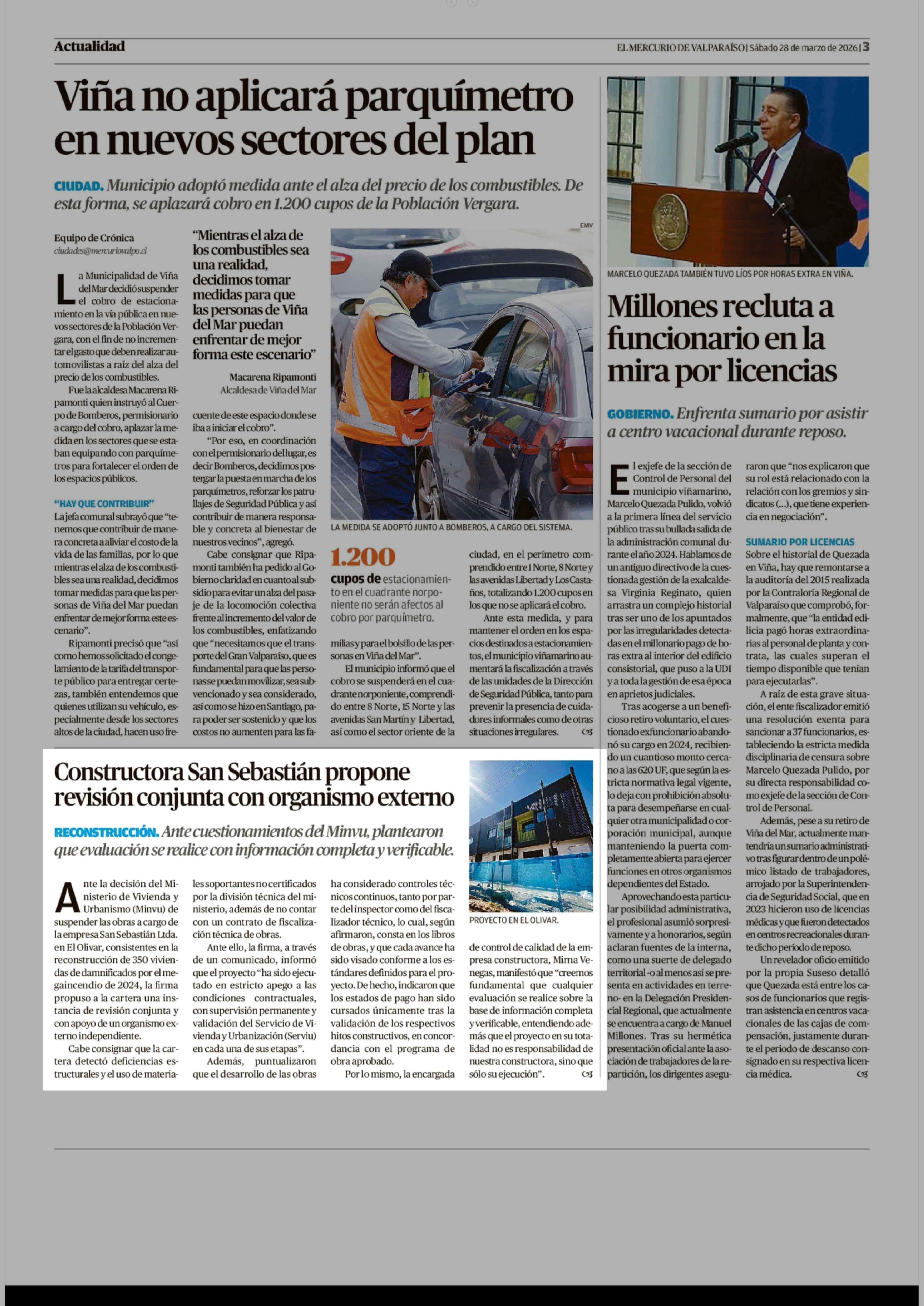 Constructora San Sebastián propone revisión conjunta con organismo externo 28-03-2026 El Mercurio de Valparaíso |