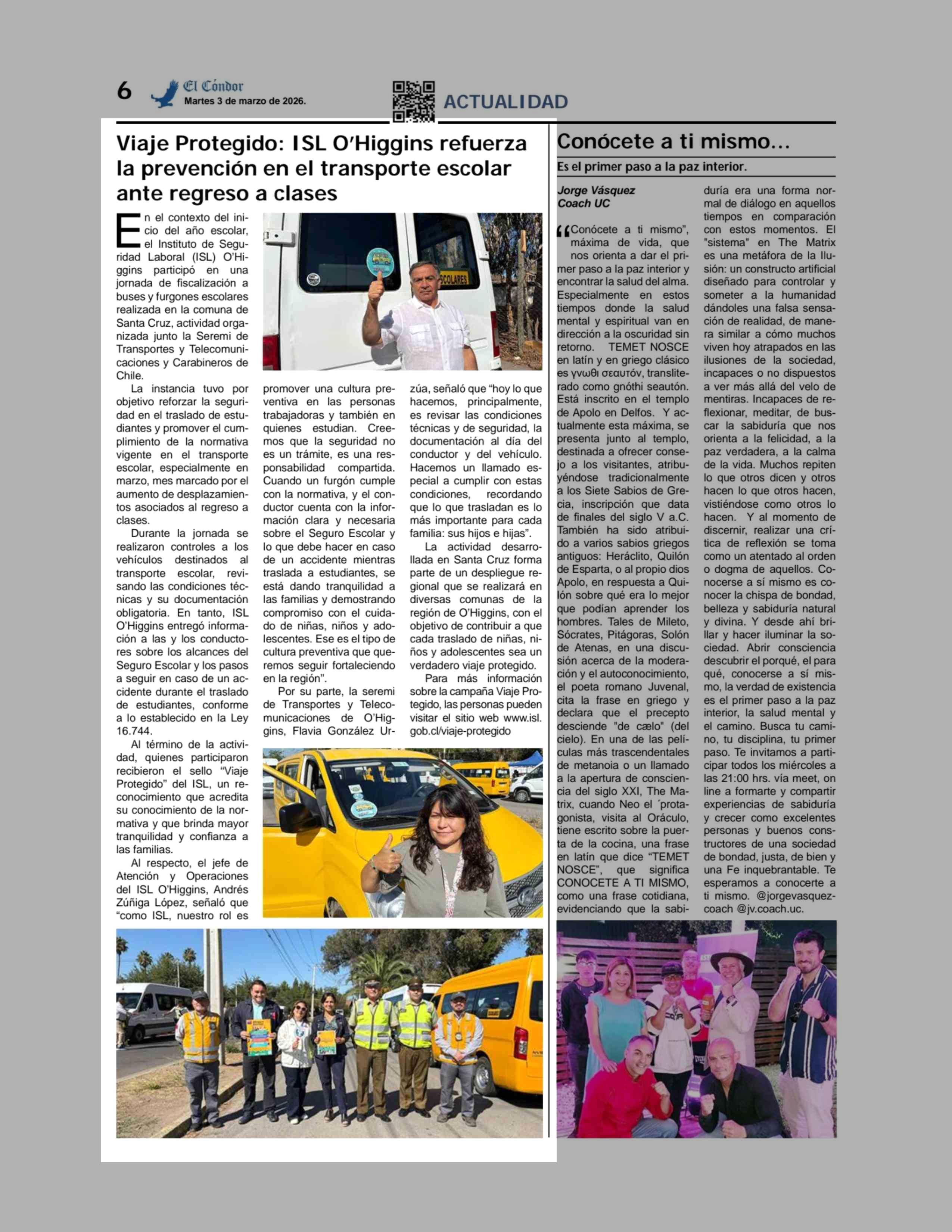 Viaje Protegido: ISL O'Higgins refuerza la prevención en el transporte escolar ante regreso a clases 03-03-2026 Diario El Cóndor |