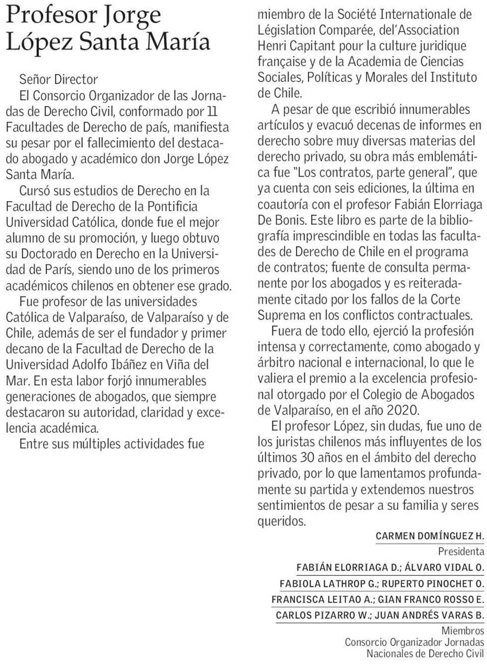Profesor Jorge López Santa María 25-01-2023 El Mercurio |