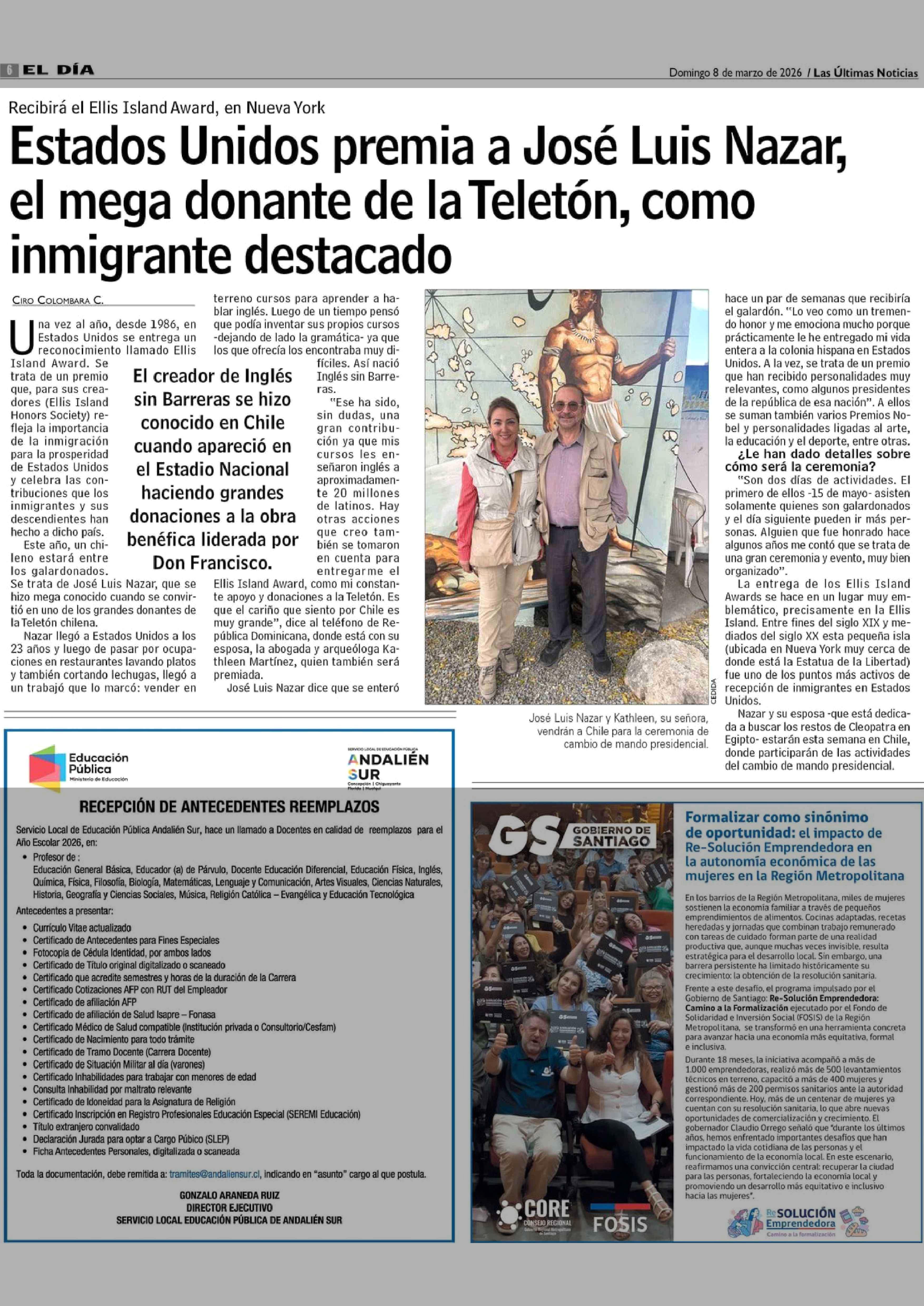 Título: Estados Unidos premia a José Luis Nazar, el mega donante de la Teleton, como inmigrante destacado