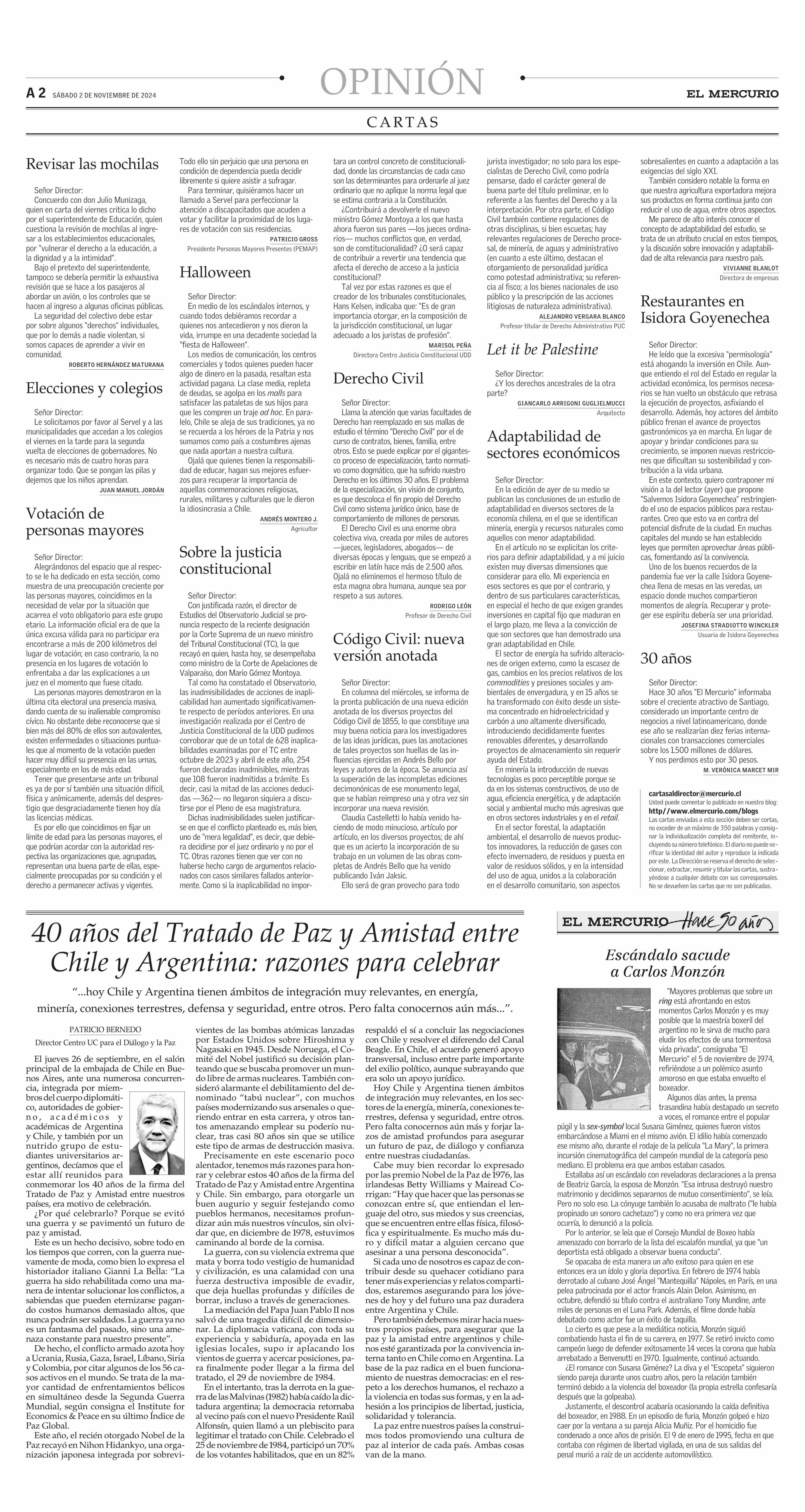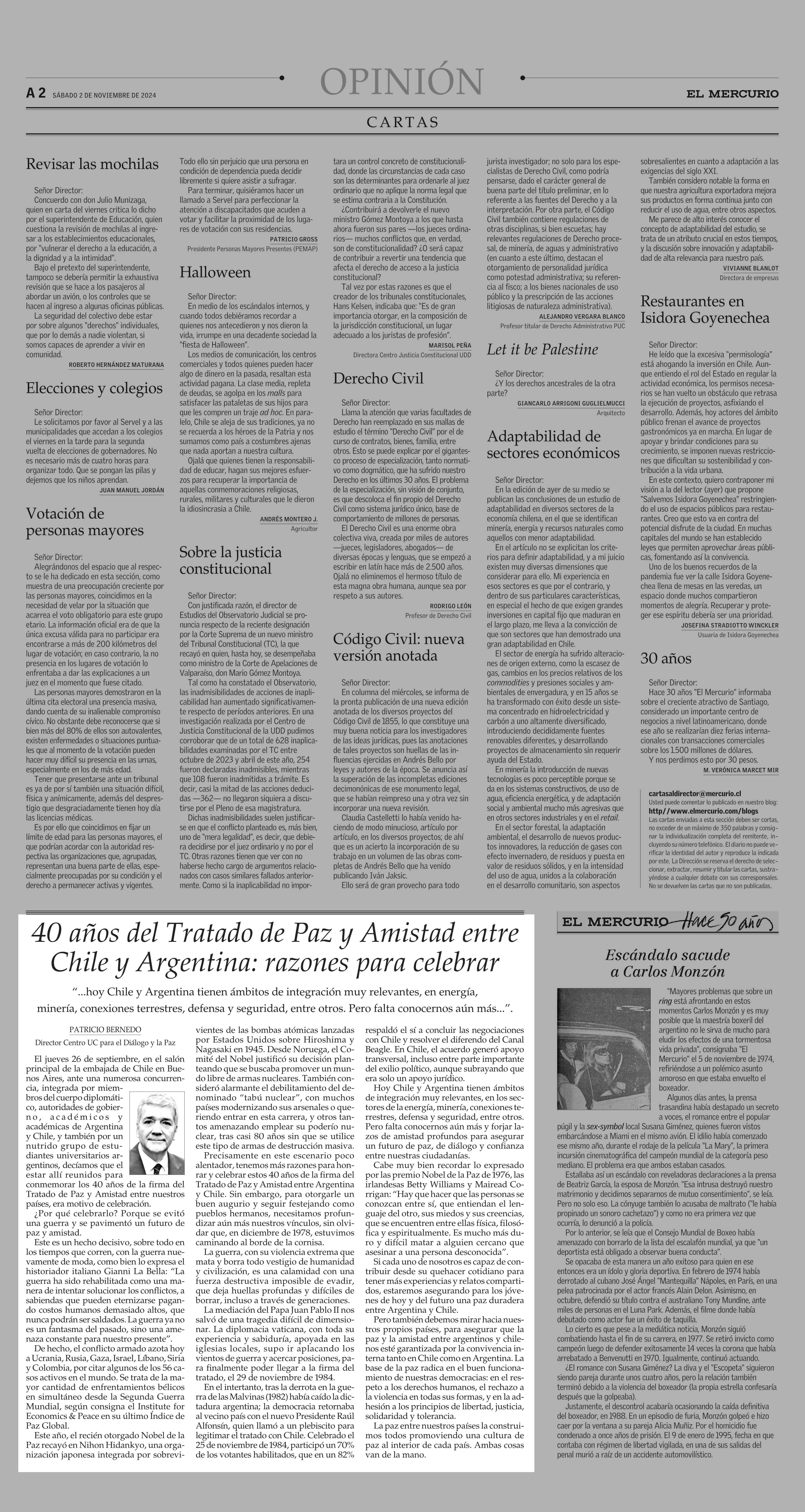 40 Años del Tratado de Paz y Amistad entre Chile y Argentina: razones para celebrar 02-11-2024 El Mercurio |