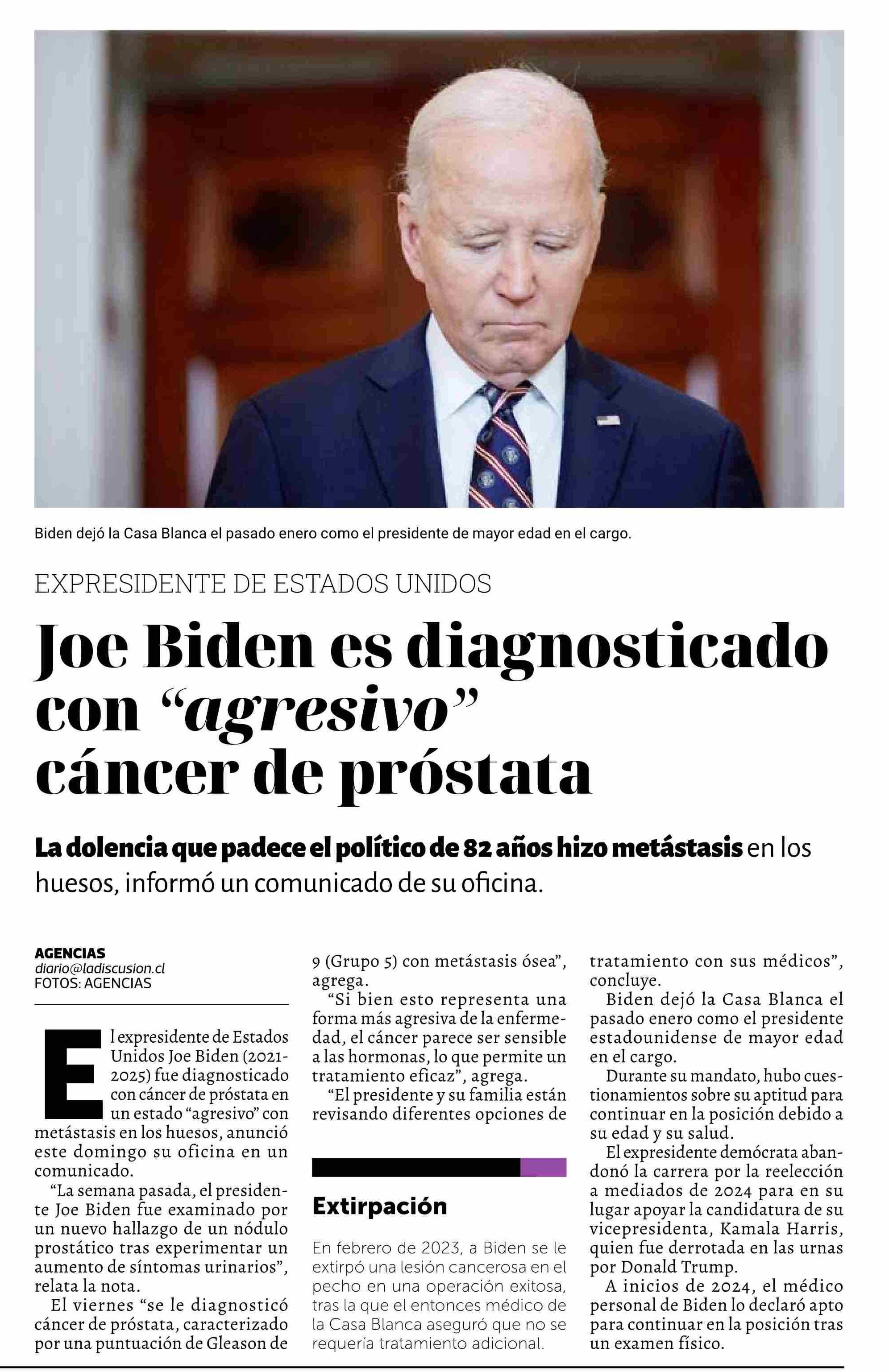 | Título: | Joe Biden es diagnosticado con "agresivo" cáncer de próstata |